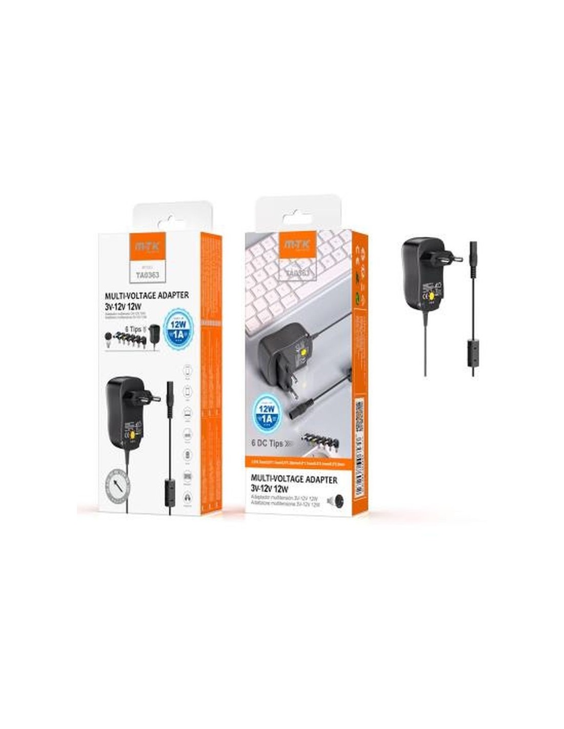 CARGADOR UNIVERSAL TA0363 ?? ?? Caracteristicas : - Funciona a 110-240 V, 50/60 Hz: perfecto para viajar - Potencia de salida total de 12 W, manual 3 / 4.5 / 5 / 6 / 7.5 / 9 / 12 V y hasta 1 A - Cable de 1,2 M - Protección: cortocircuito, sobrecarga, sobrecorriente, sobrecalentamiento Puntas: 2.5 x 0.7 mm 3.0 x 1.1 mm 3.5 x 1.35 mm 4.0 x 1.7 mm 5.5 x 2.1 mm 5.5 x 2.5 mm