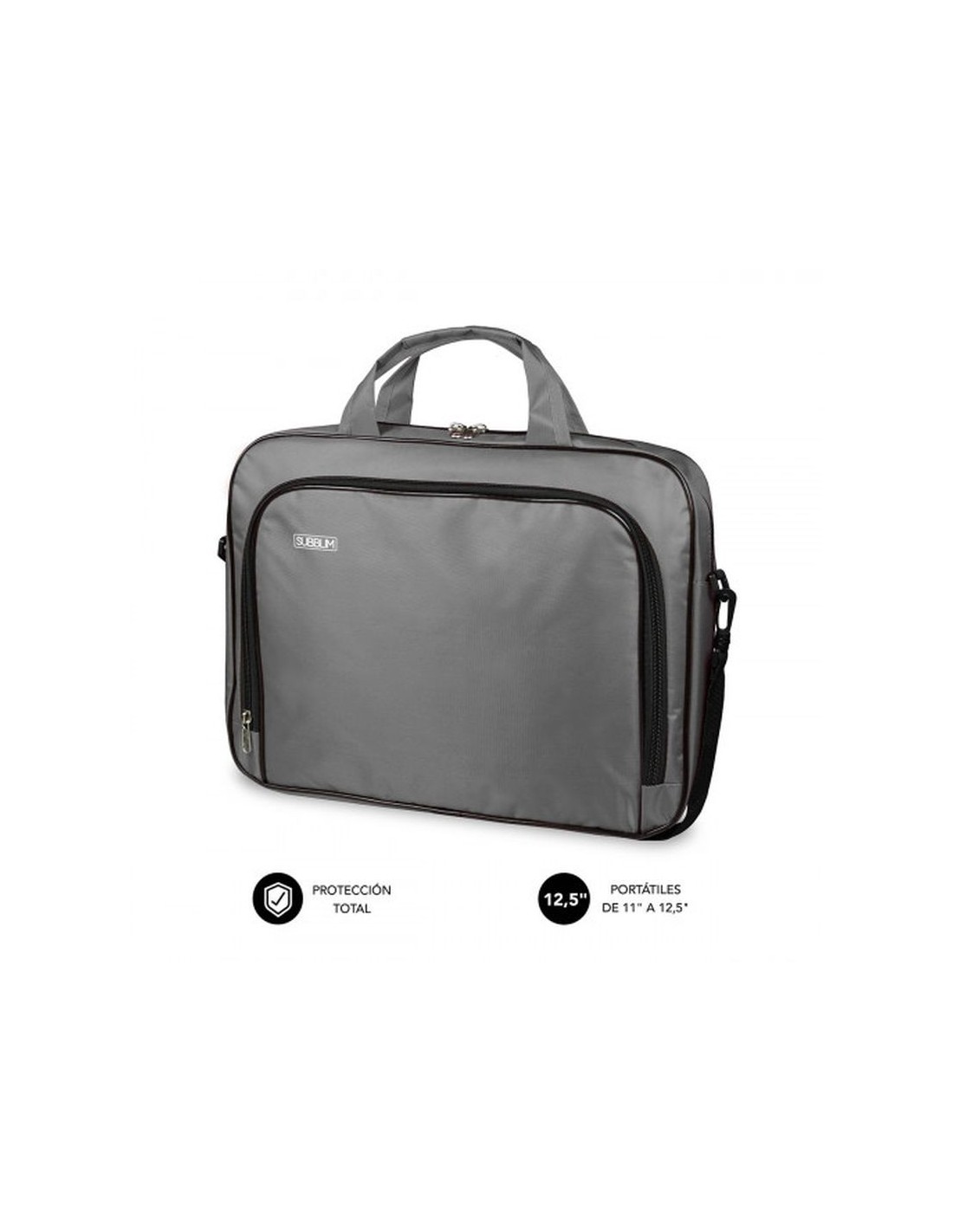 Para portátiles de 11-12.5 Fabricado en resistente poliéster Interior acolchado y reforzado Dos compartimentos separados en el interior Bolsillo exterior de gran capacidad para documentos, bolígrafos, accesorios Correa de hombro Fuertes asas y hebillas para un transporte seguro