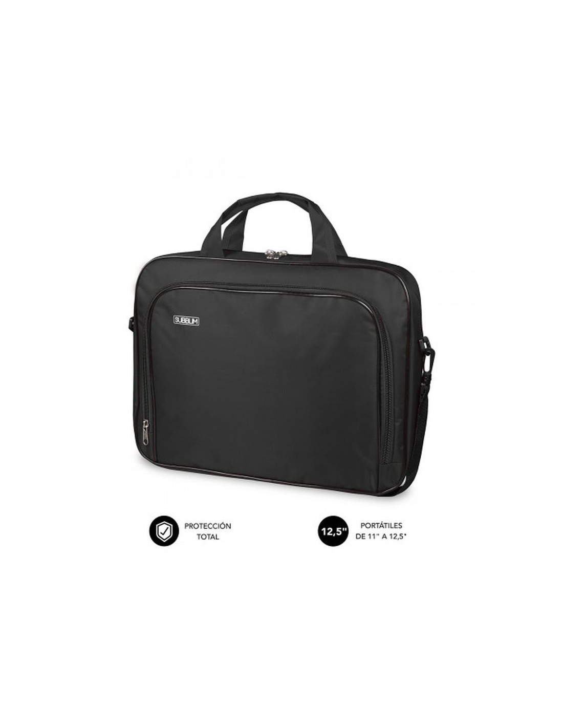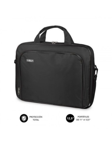 Para portátiles de 11-12.5 Fabricado en resistente poliéster Interior acolchado y reforzado Dos compartimentos separados en el interior Bolsillo exterior de gran capacidad para documentos, bolígrafos, accesorios Correa de hombro Fuertes asas y hebillas para un transporte seguro