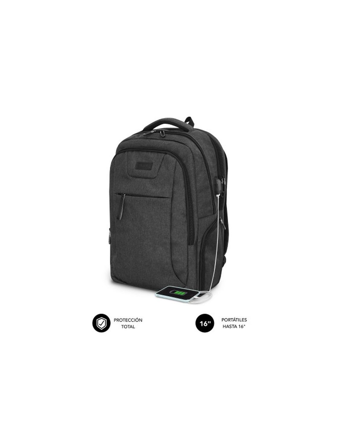 Mochila especialmente diseñada para el mundo laboral, de los negocios o estudiantes. Gracias a su altísima calidad, comodidad y seguridad, se convierte en tu mejor aliado de movilidad para ir con ella a cualquier lugar. Forma parte de la exclusiva gama Air Padding de SUBBLIM con lo que tu portátil estará especialmente protegido. A todo ello se le suman diferentes departamentos y bolsillos para transportar todos tus accesorios, documentos o enseres personales. Ha sido fabricada con unos resistentes materiales que repelen el agua y cuenta con un puerto externo de carga USB para que puedas suministrar energía a tus dispositivos. Air Padding Protección total gracias a un novedoso sistema de Burbujas de espuma acolchadas anti-impactos. Ya no te debes preocupar de los golpes o caídas fortuitas que pueden dañar tu ordenador. Gran Capacidad Multitud de compartimentos y bolsillos independientes que te permiten llevar todos los accesorios y enseres personales a cualquier lugar de la forma más ordenada. Puerto USB Permite conectar con el PowerBank ( no incluido ) y recargar tus dispositivos móviles ( Smartphone, Tablet,ebook, etc. ) para poder seguir usándolos mientras carga Transporte Gracias al asa de mano y las correas de hombro ergonómicas y acolchadas ofrece una máxima comodidad en su transporte Bolsillo Oculto Perfecto para transportar tus objetos más valiosos con una total seguridad ocultándolos en el bolsillo posicionado en la parte lumbar Exclusiva mochila diseñada para el mundo del trabajo, negocios o estudiantes Transporta y protege tu ordenador de hasta 16 Departamento independiente con espacio acolchado para el portátil con sistema AIR PADDING de alta protección y doble cremallera de cierre Otro departamento te permitirá transportar y organizar todos tus accesorios o enseres personales, con bolsillo para botellas, documentos, bolígrafos... Bolsillo en la parte frontal con cremallera para accesorios Bolsillo de seguridad oculto en la parte lumbar Dos bolsillos laterales con cremallera Correas de hombro ergonómicas, acolchadas y ajustables mediante cinta regulable Asa de mano superior acolchada para un confortable transporte Espalda reforzada mediante malla de ventilación para una mayor comodidad y que evita la sudoración con sistema Airflow de tres capas Sistema integrado de correa para Trolley Puerto USB para carga de dispositivos Medidas 46x30,5x17cm Especificaciones Material Oxford Color del producto Negro Estilo Ciudad Densidad de masa lineal 600 D Género recomendado Unisex Compartimento del portátil Si Tamaño mínimo de pantalla 33,8 cm (13.3) Tamaño máximo de pantalla 40,64 cm (16) Número de compartimentos 3 Bolsas exteriores Bolsillo frontal, Bolsillos laterales, Bolsillo Lumbar oculto Bolsillos con cremallera Si Puerto USB Si Tipo de puerto USB USB tipo A Posición de los puertos USB Exterior Tirante para hombro Si Cinturón retenedor de carrito Si Agarradera(s) Si Tipo de cierre Cremallera Resistente al agua Si Ancho 305 mm Profundidad 170 mm Altura 460 mm Peso 783 g