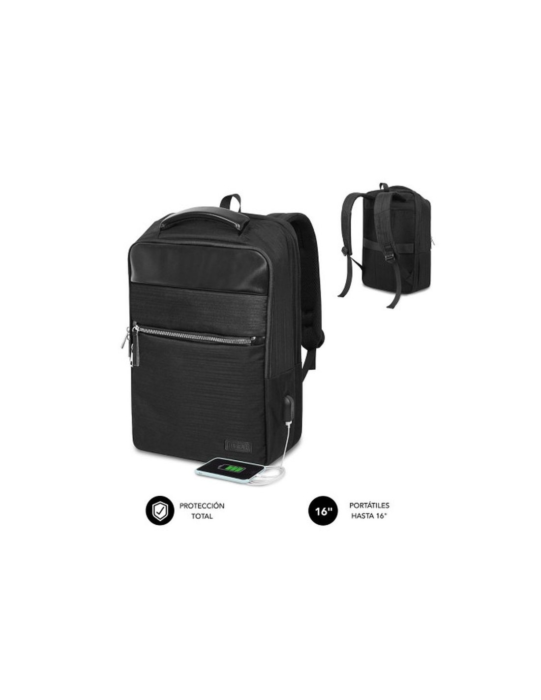 Mochila especialmente diseñada para el mundo laboral y de los negocios. Gracias a su altísima calidad y comodidad, se convierte en tu mejor aliado de movilidad para ir con ella a cualquier lugar. Forma parte de la exclusiva gama Air Padding de SUBBLIMcon lo que tu portátil estará especialmente protegido. A todo ello se le suman diferentes departamentos y bolsillos para transportar todos tus accesorios, documentos o enseres personales. Ha sido fabricada con unos resistentes materiales que repelen el agua y cuenta con un puerto externo de carga USB para que puedas suministrar energía a tus dispositivos. AIR PADDING Protección total gracias a un novedoso sistema de Burbujas de espuma acolchadas anti-impactos. Ya no te debes preocupar de los golpes o caídas fortuitas que pueden dañar tu ordenador. GRAN CAPACIDAD Multitud de compartimentos y bolsillos independientes que te permiten llevar todos los accesorios y enseres personales a cualquier lugar de la forma más ordenada. Puerto USB Permite conectar con el Power Bank ( no incluido ) y recargar tus dispositivos móviles ( Smartphone, Tablet, ebook, etc. ) para poder seguir usándolos mientras carga Transporte Gracias al asa de mano y las correas de hombro ergonómicas y acolchadas ofrece una máxima comodidad en su transporte