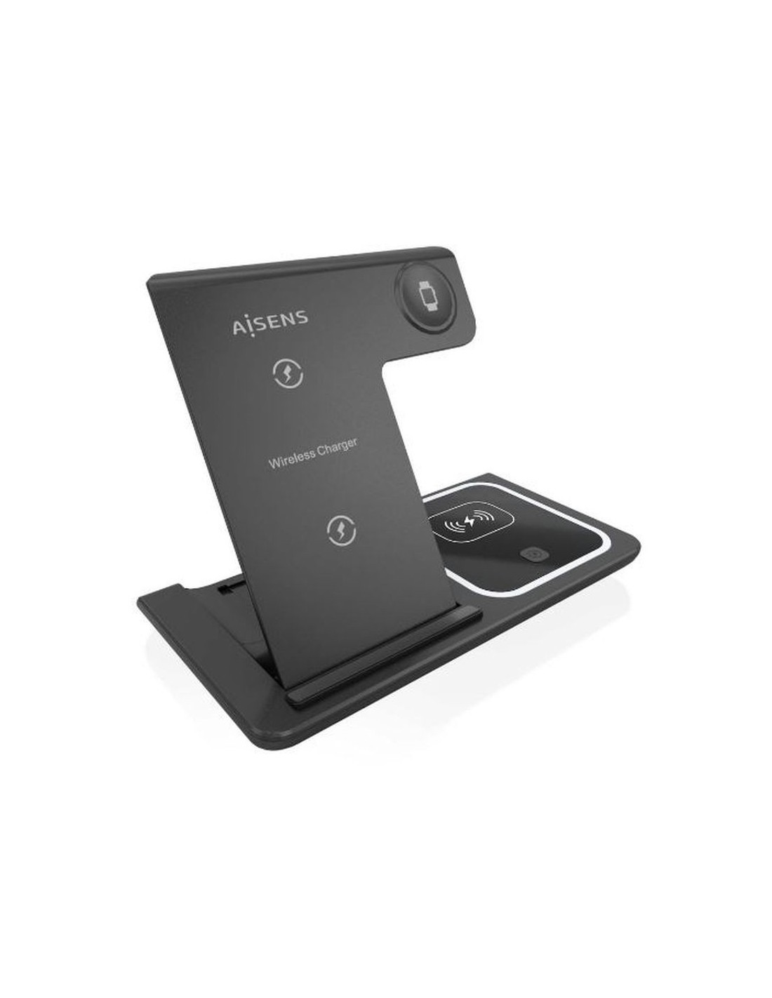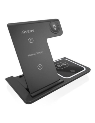 AISENS - CARGADOR INALAMBRICO USB-C 3 EN 1 DE 15W PARA MOVIL, APPLE WATCH, ARICULARES CON ESTUCHE DE CARGA, NEGRO Cargador inalámbrico USB-C 3 en 1 de 15W para móvil, Apple Watch, auriculares con estuche de carga. Diseño muy elegante, moderno y práctico. Este cargador inalámbrico plegable y portátil permite cargar varios dispositivos simultáneamente. Con un ángulo ajustable de 0 a 80°, facilita el uso manos libres mientras carga. Solo coloca tu teléfono y manténlo encendido. Compatible con fundas de móvil de hasta 3 mm, permite cargar sin quitarlas. NOTA: No es compatible con accesorios magnéticos o metálicos Admite el protocolo Qi para carga inalámbrica de hasta 15W Múltiples protecciones contra sobretensión, sobretemperatura, sobrecorriente garantizan la máxima seguridad para tus dispositivos. La luz nocturna ofrece una iluminación suave, perfecta para colocar en tu mesa de noche Especificaciones: Cantidad de puertos USB-C: 1 (Se requiere conectar a un cargador PD3.0/QC3.0 con potencia mínima de 20W. El cargador no está incluido en el producto) Entrada USB-C: 5.0V 3.0A; 9.0V 2.0A; 12.0V 1.5A Carga inalámbrica para Móvil: 15W / 10W / 7.5W / 5W Carga inalámbrica para Apple Watch: 2.5W (Nota: Solo compatible con Apple Watch, no es compatible con relojes inteligentes de otras marcas) Carga inalámbrica para auriculares con estuche de carga: 3W Compatible con todos los móviles y auriculares con estuche de carga que soportan protocolo Qi. Para carga inalámbrica a un reloj, solo es compatible con Apple Watch. Está fabricado con material ignífugo e incluye múltiples protecciones contra sobretensión, sobretemperatura, sobrecorriente, garantizando la máxima seguridad para tus dispositivos Nota: Evite colocar objetos metálicos entre tu teléfono o tu estuche recargable de los auriculares y la superficie del cargador inalámbrico, ya que esto puede interferir con su funcionamiento. Tenga en cuenta que este producto funciona mediante campos electromagnéticos. Además, mantenga tarjetas magnéticas, tarjetas bancarias o tarjetas con chip alejadas del cargador inalámbrico para evitar posibles daños o invalidaciones. Por último, evite también acercar equipos de grabación magnética e instrumentos de precisión al cargador. Color: Negro Normativas: RoHS, CE Test de funcionamiento: 100% testeado Contenido del Paquete 1 x Cargador inalámbrico 3 en 1 de 15W 1 x Cable USB-C 1 x Manual de usuario multi-idioma