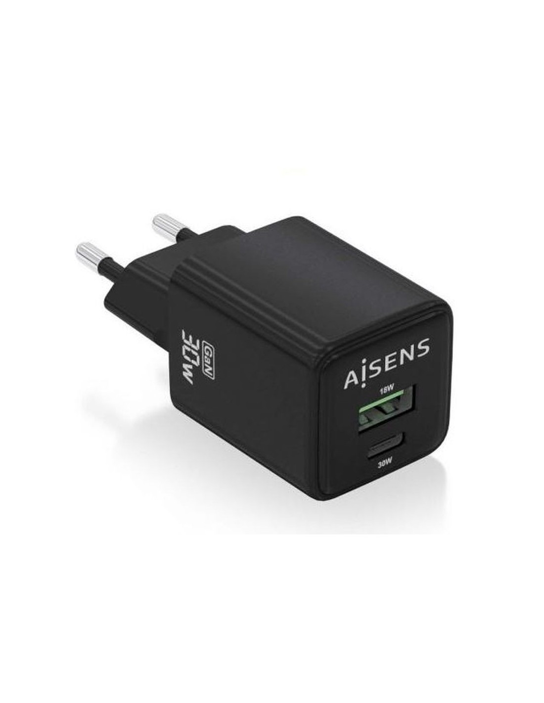 AISENS - CARGADOR GaN 30W, 1xUSB-C PD3.0 QC4.0, 1xUSB-A QC3.0, NEGRO Cargador GaN USB-C 30W para cargar portátiles, móviles, cámaras y tablets etc. Diseño muy elegante, moderno y práctico. Este cargardor cuenta con la tecnología GaN que ofrece una serie de ventajas, incluyendo una mayor eficiencia energética, menor generación de calor, mayor capacidad de corriente y menor tamaño y peso en comparación con los cargadores tradicionales de silicio. Estas ventajas hacen que los cargadores GaN sean una opción cada vez más popular para usuarios que buscan una carga más rápida, eficiente y sostenible. Tecnología AI (chip inteligente) incorporado que detecta el tipo de protocolo del dispositivo conectado para maximizar tanto la compatibilidad como la velocidad de carga. Cargue su dispositivo USB-C o USB-A de forma fácil y sencilla. Múltiples protecciones contra sobrecarga, cortocircuito, lo que garantiza la máxima seguridad para su dispositivo. Este cargador puede cargar simultáneamente 2 dispositivos USB-A y USB-C a máxima velocidad Especificaciones: Cantidad de puertos USB-C: 1 Cantidad de puertos USB-A: 1 Entrada: 100-240V 50-60Hz 1.0A Salida USB-C: 5.0V 3.0A; 9.0V 3.0A; 12.0V 2.5A; 15.0V 2.0A; 20.0V 1.5A (30W) PPS: 3.3V-11V 3.0A; 3.3V-16V 2.0A (33W) Salida USB-A: 5.0V 3.0A; 9.0V 2.0A; 12.0V 1.5A Salida USB-C+USB-A: 5.0V 3.6A Potencia total: 33W Nivel de eficiencia: VI Compatible con la mayoría de los dispositivos USB-C o USB-A tales como portátiles, teléfonos móviles, smartphones, tablets, GPS, MP3, MP4, consolas de videojuego etc. Soporta PD3.0 para poder cargar dispositivos inteligentes con tecnología PD3.0 de forma muy rápida. Aparte de soportar protocolo PD3.0, este cargador también soporta los siguientes protocolos: PPS: 3.3V-11V 3.0A; 3.3V-16V 2.0A QC3.0: 3.4V-19.94V QC2.0 / QC4.0: 5V, 9V, 12V, 20V HUAWEI FCP: 5V, 9V, 12V HUAWEI SCP: 5.5-10V SAMSUNG AFC: 9V, 12V APPLE: 5V 2.4A BC1.2: DCP 5V 1.5A Está fabricado con material ignífugo e incluye múltiples protecciones contra sobrecarga, cortocircuito, lo que garantiza la máxima seguridad para su dispositivo. Longitud: N/A Color: Negro Normativas: RoHS, CE Test de funcionamiento: 100% testeado Contenido del paquete: 1 x Cargador GaN 30W 1 x Manual de usuario multi-idioma