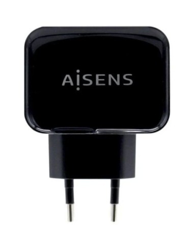 Características Cargador de pared con dos puertos de USB. Diseño muy elegante, moderno y práctico. Tecnología de AI (chip inteligente) incorporado que detecta la corriente de entrada de los dispositivos conectados para maximizar tanto la compatibilidad como la velocidad de carga (hasta 2,4 amperios por cada puerto USB). Cargue su dispositivo USB de forma fácil y sencilla a través del cable USB. Circuito de protección contra sobrecargas incorporado que protege su dispositivo USB ante cualquier daño debido a la inestabilidad del voltaje. Gracias a la salida de 17W 3,4A, este cargador de pared puede cargar simultáneamente dos dispositivos USB a máxima velocidad (hasta 2,4A/Puerto USB). Especificaciones Cantidad de puertos USB: 2 Entrada: 100-240V~50/60Hz 0.9A Salida: 5V 3,4A total, (Hasta 2,4A / Puerto USB) Potencia: 17W. Compatible con prácticamente todos los dispositivos USB con voltaje de entrada 5V tales como teléfonos móviles, Smartphones, tablets, GPS, MP3, MP4, consolas de videojuego etc. Color: Negro Normativas: RoHS, CE Test de funcionamiento: 100% testeado