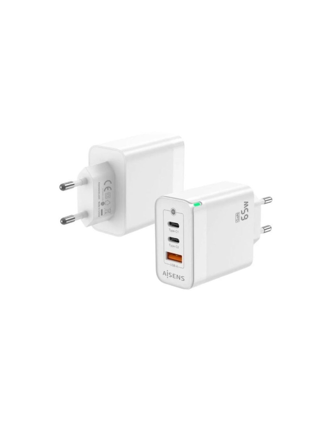 Cargador GaN USB-C 65W para cargar portátiles, móviles, cámaras y tablets etc. Diseño muy elegante, moderno y práctico. Este cargardor cuenta con la tecnología GaN que ofrece una serie de ventajas, incluyendo una mayor eficiencia energética, menor generación de calor, mayor capacidad de corriente y menor tamaño y peso en comparación con los cargadores tradicionales de silicio. Estas ventajas hacen que los cargadores GaN sean una opción cada vez más popular para usuarios que buscan una carga más rápida, eficiente y sostenible. Tecnología AI (chip inteligente) incorporado que detecta el tipo de protocolo del dispositivo conectado para maximizar tanto la compatibilidad como la velocidad de carga. Cargue su dispositivo USB-C o USB-A de forma fácil y sencilla. Múltiples protecciones contra sobrecarga, cortocircuito, lo que garantiza la máxima seguridad para su dispositivo. Este cargador puede cargar simultáneamente 3 dispositivos USB-A y USB-C a máxima velocidad. Especificaciones: Cantidad de puertos USB-C: 2 Cantidad de puertos USB-A: 1 Entrada: 100-240V 50-60Hz 1.5A Salida USB-C (C1 o C2): 5.0V 3.0A; 9.0V 3.0A; 12.0V 3.0A; 15.0V 3.0A; 20.0V 3.25A Salida USB-A: 5.0V 3.0A; 9.0V 3.0A; 12.0V 3.0A Salida C1+C2: 45W+18W Salida C1+USB-A: 45W+18W Salida C2+USB-A: 5.0V 3.0A 15W Salida C1+C2+USB-A: 45W+15W Potencia total: 65W Nivel de eficiencia: VI Compatible con la mayoria de los dispositivos USB-C o USB-A tales como portátiles, teléfonos móviles, smartphones, tablets, GPS, MP3, MP4, consolas de videojuego etc. Soporta PD3.0 para poder cargar dispositivos inteligentes con tecnología PD3.0 de forma muy rápida. Aparte de soportar protocolo PD3.0, este cargador también soporta los siguientes protocolos: PD3.0: 5V, 9V, 12V, 15V, 20V PPS: 3.3-16V 3.25A; 3.3-21V 3.0A QC3.0 / QC4.0: 3.6V-20V QC2.0 / QC4.0: 5V, 9V, 12V, 20V HUAWEI FCP: 5V, 9V, 12V SAMSUNG AFC: 9V APPLE: 5V 2.4A BC1.2: DCP 5V 1.5A Está fabricado con material ignífugo e incluye múltiples protecciones contra sobrecarga, cortocircuito, lo que garantiza la máxima seguridad para su dispositivo. Color: Blanco Normativas: RoHS, CE est de funcionamiento: 100% testeado Contenido del paquete: 1 x Cargador GaN 65W 1 x Manual de usuario multi-idioma