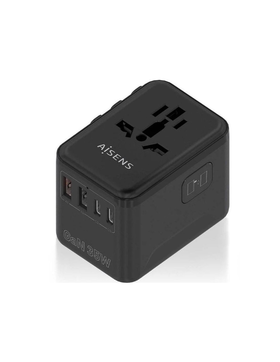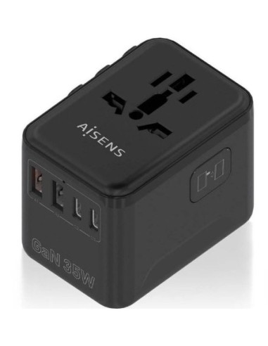 AISENS - ADAPTADOR ENCHUFE UNIVERSAL PARA VIAJE EU/USA/UK/AU CON CARGADOR USB GaN, 2xUSB-A (A1 QC3.0), 3xUSB-C (C1 PD3.0) 35W, NEGRO Este adaptador universal de viaje todo-en-uno es ideal para quienes viajan a nivel internacional, funcionando en más de 200 países y regiones. Con 4 tipos de enchufes y la capacidad de cargar hasta 5 dispositivos simultáneamente, es perfecto para viajes de negocios, vacaciones o estudiantes en el extranjero. Adaptador Universal de Viaje Todo-en-Uno: Compatible con más de 200 países y regiones, incluye 4 tipos de enchufes: Tipo C (Francia, Alemania, Italia, España, etc.), Tipo G (Reino Unido, Hong Kong, Dubai, etc.), Tipo A (EE.UU., Japón, México, etc.) y Tipo I (China, Australia, Argentina, etc.). Cargador USB-C y USB-A GaN: Equipado con 2 puertos USB-A (A1 18W) y 3 puertos USB-C (C1 35W), permite cargar hasta 5 dispositivos simultáneamente aprovechando la tecnología GaN para mayor eficiencia y carga rápida. Diseño Compacto y Portátil: Con un tamaño de 7,1 x 5 x 5,6 cm, es fácil de llevar en cualquier viaje de negocios, estudio o vacaciones internacionales. Seguridad Avanzada: Incorpora fusible reemplazable de 10A, protección contra sobrecorriente, sobretensión, sobrecalentamiento y cortocircuito. Además, su material ignífugo y diseño de obturador de seguridad garantizan protección total. Nota Importante: Este adaptador no convierte el voltaje. Asegúrese de que su dispositivo sea compatible con el voltaje del lugar de destino. Tecnología AI: Cuenta con un chip inteligente que detecta el protocolo del dispositivo conectado para maximizar tanto la compatibilidad como la velocidad de carga. Especificaciones Técnicas: Enchufe de corriente: Tensión de entrada: 100-250 V / 10A Potencia máxima: 250V 10A (2500W) / 100V 10A (1000W) Cargador USB Multifuncional: Puertos USB-A: 2 (A1 Soporta protocolo QC3.0) Puertos USB-C: 3 (C1 Soporta protocolo PD3.0) Salidas USB-C (C1): 5.0V 3.0A; 9.0V 3.0A; 12.0V 2.5A; 15V 2.33A (35W) Salidas USB-C (C2/C3): 5.0V 3.0A (15W) Salidas USB-A (A1): 5.0V 3.0A; 9.0V 2.0A; 12.0V 1.5A (18W) Salidas USB-A (A2): 5.0V 2.4A (12W) Salidas combinadas (C1+A1): 5.0V 3.0A (15W) Salidas combinadas (A2+C2/C3): 5.0V 3.0A (15W) Salidas combinadas (C1+A2): 20W+12W Salidas combinadas (C1+C2/C3): 20W+15W Salidas combinadas (A1+A2): 18W+12W Salidas combinadas (A1+C2/C3): 18W+15W Salidas combinadas (A2+C2+C3): 5.0V 3.0A (15W) Salidas combinadas (A1+(A2+C2)): 18W+15W Salidas combinadas ((C1+A1)+A2): 15W+12W Salidas combinadas ((C1+A1)+C2/C3): 15W+15W Salidas combinadas (C1+(A2+C2)): 20W+15W Salidas combinadas ((C1+A1)+(A2+C2)): 15W+15W Salidas combinadas (C1+(A2+C2+C3)): 20W+15W Salidas combinadas (A1+(A2+C2+C3)): 18W+15W Salidas combinadas ((C1+A1)+(A2+C2+C3)): 5.0V 6.0A (30W) Potencia total: 35W Protocolos soportados: QC3.0: 3.6V-12V QC2.0 / QC4.0: 5V, 9V, 12V HUAWEI FCP: 5V, 9V, 12V HUAWEI SCP: 3.3-12V SAMSUNG AFC: 9V, 12V APPLE: 5V 2.4A BC1.2: DCP 5V 1.5A Normativas: RoHS, CE Test de funcionamiento: 100% probado Contenido del paquete: 1 x Adaptador Universal de Viaje Todo-en-Uno 1 x Manual de usuario multi-idioma