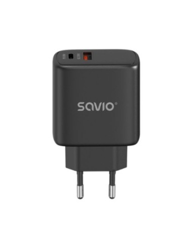 El cargador de red SAVIO LA-06/B es compatible con la tecnología Quick Charge y Power Delivery 3.0 y 2.0, gracias a la cual los dispositivos compatibles se pueden cargar hasta 4 veces más rápido. Si el dispositivo que se está cargando no admite la tecnología de carga rápida, el cargador ajustará la velocidad de carga máxima segura. Para utilizar plenamente las capacidades del cargador, es necesario utilizar un cable USB que admita la tecnología Quick Charge y Power Delivery. Amplia compatibilidad Equipado con puertos USB A y USB-C estándar, el cargador SAVIO LA-06/B permite cargar dos dispositivos simultáneamente, adaptando el rendimiento a sus necesidades individuales. Ya sea que utilice teléfonos inteligentes, tabletas u otros dispositivos electrónicos, este cargador avanzado es el compañero perfecto para el uso diario. Especificaciones técnicas Puertos: 1 x USB-A, 1 x PD Voltaje de entrada: 100-240 V~, 50/60 Hz, 0,85 A Voltaje de salida para el puerto USB Quick Charge 3.0: 12V?1.5A / 5V?3A / 9V?2A Voltaje de salida y potencia para el puerto USB-C (puerto Power Delivery 3.0): 12V?2.5A (30W) / 15V?2A (30W) / 20V?1.5A (30W) / 5V?3A (15W) / 9V?3A (27W) Rendimiento total para puerto USB-A + PD: máx. 20 W (5 V? 4 A) Compatible con los siguientes estándares: Quick Charge 3.0 y Power Delivery 3.0. | Todos los teléfonos inteligentes, tabletas, etc. Protección: sobrecarga y cortocircuito. Dimensiones: 86 mm x 42 mm x 25 mm. Contenido del set: cargador de pared, manual de usuario. Color: Negro General Marca: SAVIO Garantía: 36 Part Number: SAVLA-06-B Categorías: ACCESORIOS TELEFONÍA Reacondicionado: No Reposición - Etiqueta: No Peso Volumetrico 0.1 Kg. Detalles técnicos Tipología Accesorios Telefonía: Cargadores Marca compatible: Todas las marcas Funciones de protección: Sobrecarga, Cortocircuitos Alimentación: Cargador Bluetooth: No Cantidad: 1 Compatibilidad del cargador: Universal Número de productos incluidos: 1 pieza(s) Tipo de cargador: Exterior Otras características A prueba de agua: No Peso y dimensiones Altura: 25 mm Ancho: 42 mm Profundidad: 86 mm Conectividad Conexiones: PS/2 Cantidad de puertos USB 3.0: 2 Control de energía Potencia de salida: 18 W Voltaje de entrada: 100 - 240 V Voltaje de salida: 12 V Color Color: Negro Contenido del embalaje Cantidad por paquete: 1