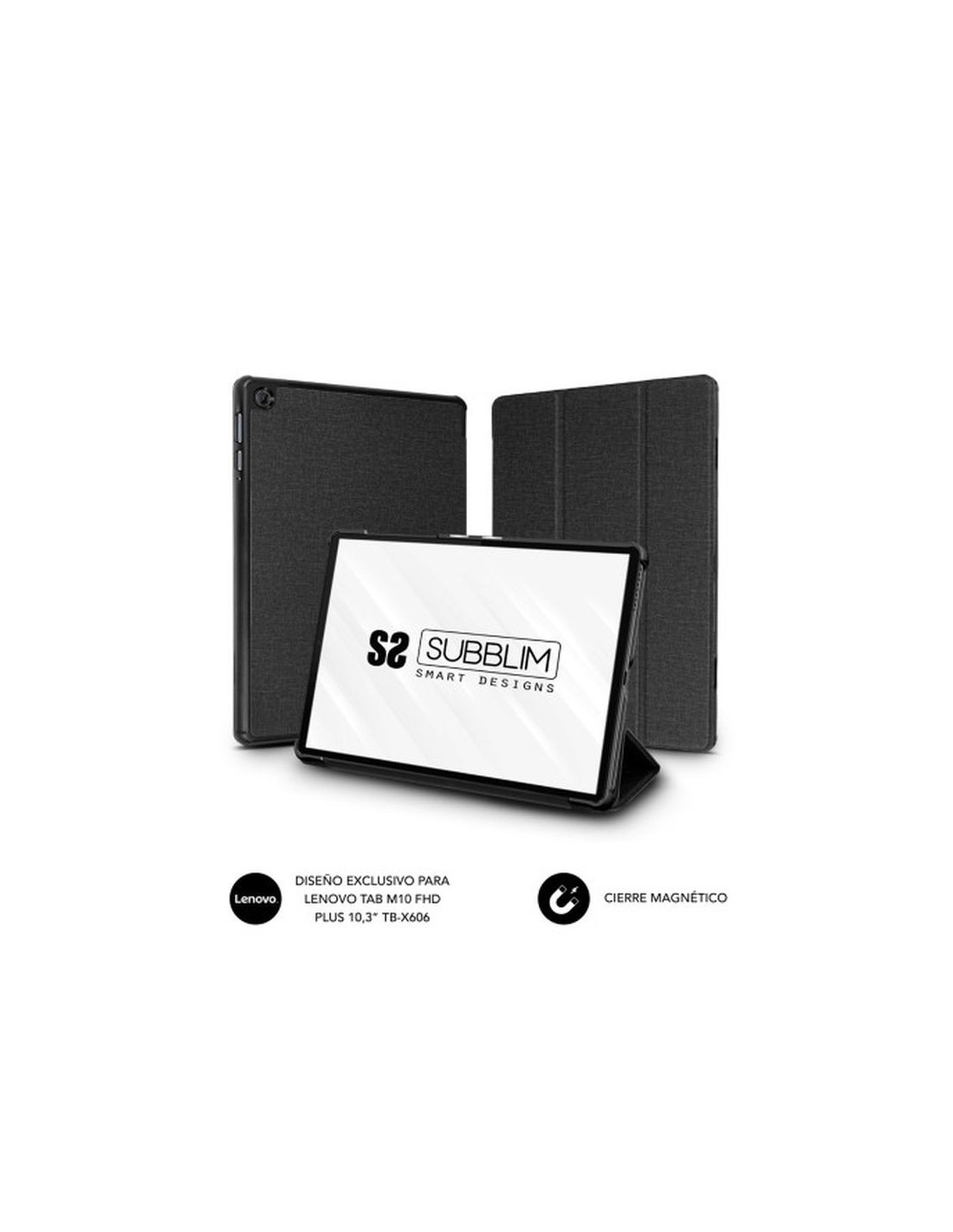 Funda exclusiva para la Tablet Lenovo M10 FHD Plus 10,3 TB-X606. Resistente material exterior con acabado en Cloth. Bordes reforzados contra caídas accidentales. Carcasa trasera rígida de alta calidad y resistente. Diseño ultraligero y muy fino. Interior aterciopelado para evitar arañazos. Apertura para cámara en la parte posterior. Fácil acceso a los botones de control y puerto de carga USB. Función atril de dos posiciones de visión. El sistema de cierre es magnético facilitando un transporte seguro. Características Tipo de cierre Cierre magnético Color principal del producto Negro Tamaño máximo de pantalla 10,3 Tipo de funda Funda Marca compatible Lenovo Compatibilidad LENOVO M10 TB-X605
