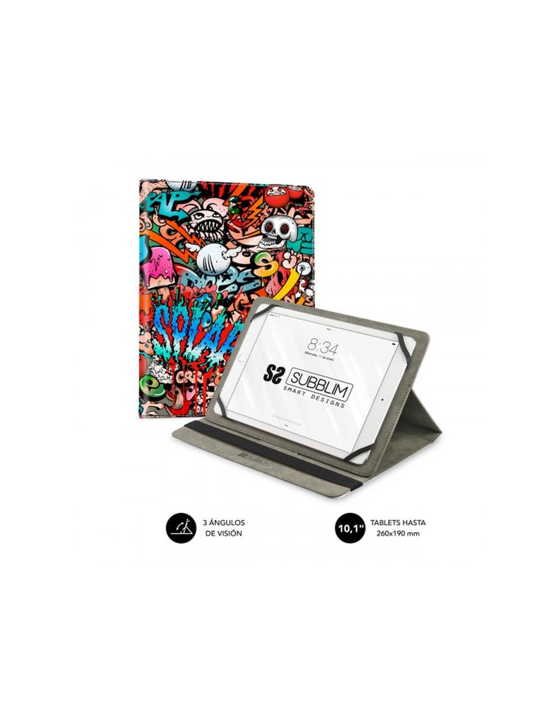 Diseñado para Tablets de hasta 11 Moderna y ligera acabada con materiales de alta calidad 100% Accesibles todos los botones y conectores Posición Stand con 3 ángulos de visión Adaptable a todos los modelos de Tablet mediante un exclusivo sistema de fijaciones de silicona que no daña tu tablet Interior suave y aterciopelado Sistema de cierre mediante banda elástica. Transporte seguro TRENDY CASE, es una funda universal para proteger tu Tablet. Su estilo es moderno, elegante y divertido, desarrollado por diseñadores con las preferencias del usuario. El acabado exterior con acabado en PU y el exquisito cosido le dan al producto un aspecto de alta calidad. El soporte antideslizante permite colocar la Tablet en varios ángulos de visión. Los puertos de conexión y botones permanecen accesibles incluso cuando su Tablet está en la funda, con grandes aberturas en todos los lados. Peso 0.356 kg Dimensiones 26.4 × 19.5 × 2 cm Color Estampado multicolor https://subblim.com/producto/funda-tablet-universal-trendy-case-graffiti/
