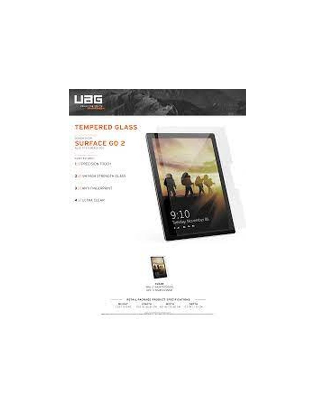 UAUrban Armor Gear 342470110000. Tipo de protector de pantalla: Protector de pantalla, Material: Vidrio templado, Dureza: 9H, Marca compatible: Microsoft, Compatibilidad: Surface Go 2. Cantidad por paquete: 1 pieza(s) Protector de pantalla para Microsoft Surface Go2/Go3,