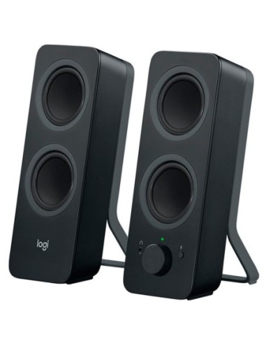 ESPECIFICACIONES Y DETALLES DIMENSIONES Altura x Anchura x Profundidad: 241 mm x 90 mm x 124 mm Peso: 0.99 KG REQUISITOS DEL SISTEMA Funciona con dispositivos Bluetooth® y cualquier dispositivo con una entrada de 3,5 mm: Televisor Computadora Smartphone Tablet Reproductor de música ESPECIFICACIONES Total de vatios (pico): 10 W Total de vatios reales (RMS): 5 W Bluetooth: 4.1 Confiable radio de acción de 20 metros con línea de visión directa Entrada de 3,5 mm: 1 Toma de auriculares: 1 Emparejamiento Bluetooth y controles de volumen situados en la parte frontal del altavoz derecho ESTA CAJA CONTIENE Dos altavoces Cable de audio de 3,5 mm Documentación del usuario INFORMACIÓN DE GARANTÍA Dos años de garantía de hardware limitada NÚMERO DE REFERENCIA Negro: N de referencia: 980-001294 https://www.logitech.com/es-roam/product/z207-stereo-speakers-bluetooth#specification-tabular
