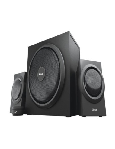 Especificaciones General Height of main product (in mm) 240 mm Width of main product (in mm) 180 mm Depth of main product (in mm) 240 mm Total weight 3720 g Weight of main unit 2220 g Connectivity Connection type wired Cable length power cable 150 cm Cable length audio cable 150 cm Cable length satellite cable 140 cm Bluetooth no Cable length subwoofer to remote cable 180 cm Cables included power cable,3.5mm audio cable Audio Driver units 3 Speaker impedance 4 Ohm Input impedance 680 Ohm Audio input 3.5 mm Audio output None Headphone connection yes Microphone built-in yes Microphone connection no Power output (peak) 120 W Power output (RMS) 60 W Power output - subwoofer (RMS) 30 W Power output - satellite (RMS) 15 W Frequency response 20 Hz - 20000 Hz Features NFC no Hands-free phone calls no Tripod mount no Accessories 3.5mm audio cable Power saving yes Lighting Lights no Protection Waterproof no Power Power cable detachable yes Input Power source wall socket Compatibility Compatible Device Types pc, smartphone, laptop, tablet Compatible Consoles no Control Controls volume Remote control wired Satellites Satellite Height (mm) 154 mm Satellite Width (mm) 115 mm Satellite Depth (mm) 75 mm Satellite Weight (gr) 350 gr Subwoofer Subwoofer Height (mm) 240 mm Subwoofer Width (mm) 180 mm Subwoofer Depth (mm) 180 mm Subwoofer Weight (gr) 2222 gr Remote Batteries for remote included no https://www.trust.com/es/product/23696-yuri-2-1-speaker-set