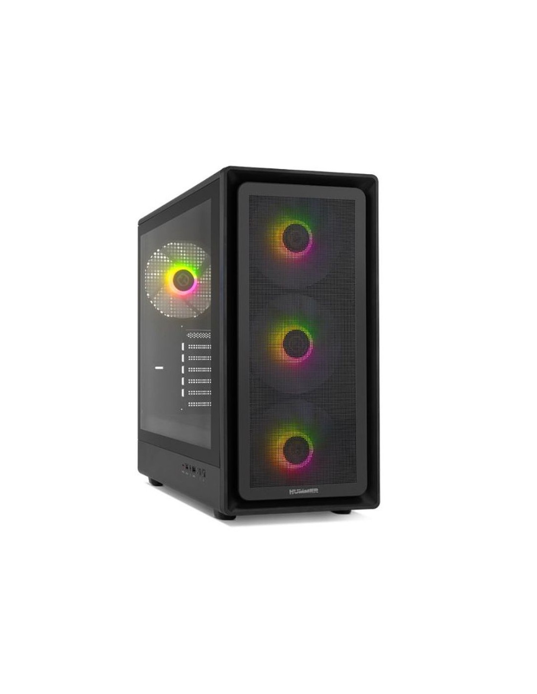 ATX/M-ATX /ITX, 2x USB 3.0, 1x USB Type-C, HD Audio, Mic, 486 x 221 x 459 mm Destacado Cuatro ventiladores ARGB PWM incluidos Frontal metal mesh y lateral de cristal templado Espacio para instalar hasta 12 ventiladores Compatible con gráficas de gran tamaño Filtro superior magnético USB 3.0 y USB Type-C de alta velocidad Soporte para gráficas integrado Disponible en negro y en blanco Nox Hummer AERO es una semitorre con frontal mesh que incluye 4 ventiladores y un soporte para tarjetas gráficas integrado. Esta caja de Nox ha sido diseñada para ofrecer una refrigeración máxima y cuidar de tus componentes manteniendo siempre la temperatura de su interior a raya. Compatible con gráficas de gran tamaño, hasta 420 mm, lo que permite montar gráficas de última generación. Diseño impactante Disponible en negro y blanco, Nox Hummer AERO ha sido diseñada para ofrecer una refrigeración de otro nivel, pudiendo así crear un ordenador que te siga el ritmo sin quedarse atrás por el sobrecalentamiento de los componentes. Su estética sencilla y llamativa al mismo tiempo la hacen la opción perfecta para cualquier setup. Su frontal mesh, con 3 ventiladores incluidos, ofrece un extra de ventilación que ayuda con la compleja tarea de mantener el PC a temperaturas óptimas cuando alcanza su rendimiento máximo. Además, con su cristal templado lateral podrás apreciar tu configuración en todo su esplendor. Construido en acero sólido de 0,5 mm, posee acabados excelentes gracias a materiales de alta calidad, que contribuye a protegerla de arañazos o golpes. Las patas de esta caja incorporan una base de goma para evitar las molestas vibraciones. Extraordinaria capacidad Este chasis con frontal mesh de Nox es compatible con configuraciones que están en el siguiente nivel. Sus posibilidades de montaje admiten refrigeraciones líquidas, en su parte superior, de hasta 360 mm, del mismo modo que tarjeta gráfica de 420 mm y CPU de 174 mm, lo que permite adaptar rápidamente tu configuración a las mejoras del mercado. Sube de nivel la refrigeración Pudiendo instalar hasta doce ventiladores la Nox Hummer AERO te ofrece una refrigeración de otro nivel. Mantén tu ordenador siempre a los niveles óptimos de temperatura, consiguiendo un rendimiento superior de tus componentes al evitar que alcancen temperaturas elevadas. Nox Hummer AERO cuenta con capacidad para hasta doce ventiladores de 120 mm, distribuidos: uno en la parte trasera, tres en la zona frontal, estos cuatro de 140 mm ya vienen incluidos; tres de 120 mm en la zona superior, tres de 120 mm en la zona de la PSU y dos de 140 mm en la zona de la placa base. Una caja con una refrigeración superior está esperándote. No pierdas la concentración Esta caja Nox concentra los accesos en su parte lateral, haciendo que este sea un chasis idóneo para aquellos que prefieren tener su ordenador en su mesa o escritorio. Esto te hará evitar distracciones y centrarte solo en ganar la partida. Incluye dos puertos dedicados USB 3.0, un puerto USB Tipo C, así como las conexiones HD audio y micrófono. También cuenta con una gestión de cableado de 21 mm. Múltiples prestaciones Nox Hummer AERO es compatible con los formatos ATX, ITX y Micro ATX. También admite múltiples combinaciones de hasta cuatro discos duros: pudiendo instalar 2 x 3.5 y 2 x 2.5. Además, incluye siete ranuras de expansión. Puertos e Interfaces Cantidad de puertos tipo A USB 3.2 Gen 1 (3.1 Gen 1) 2 Cantidad de puertos tipo C USB 3.2 Gen 2 (3.1 Gen 2) 1 Número de puertos USB Tipo C 1 Entrada de audio Si Salida de audio Si Peso y dimensiones Altura 459 mm Ancho 221 mm Peso 5,3 kg Profundidad 486 mm Enfriamiento Compatible con modulación por ancho de pulsos (PWM) Si Diámetro de ventiladores secundarios soportados 120 mm Diámetro de ventiladores inferiores secundarios soportados 120 mm Diámetros de ventiladores superiores soportados 120,140 mm Número de ventiladores laterales soportados (max.) 2 Número de ventiladores superiores soportados 3 Número de ventiladores inferiores soportados (max.) 3 Tamaños compatibles con el radiador superior 120,240,280,360 mm Ventiladores frontales instalados 3x 140 mm Ventiladores traseros instalados 1x 140 mm Fuente de alimentación Factores de forma de la fuente de alimentación compatibles ATX Fuente de alimentación incluida No Ubicación de fuente de alimentación Parte trasera Medios de almacenaje Tamaños de disco duro soportados 2.5,3.5 Diseño Número de bahías 2.5 2 Número de puertos 3.5 2 Altura máxima de la CPU más fresco 17,4 cm Botón de restaurar Si Botón de encendido/apagado Si Factor de forma Midi Tower Filtro anti-polvo Si Formas de factor de tarjeta madre soportadas ATX, ITX, micro ATX Gestión de cables Si Iluminación Si Iluminación ubicación Ventiladores de la caja Indicadores LED Si Material Acero inoxidable, Vidrio templado Máxima longitud de la tarjeta de gráficos 42 cm Máxima longitud de PSU 24 cm Número de ranuras de expansión 7 Panel(es) de vidrio templado Si Tipo PC Ventana lateral Si