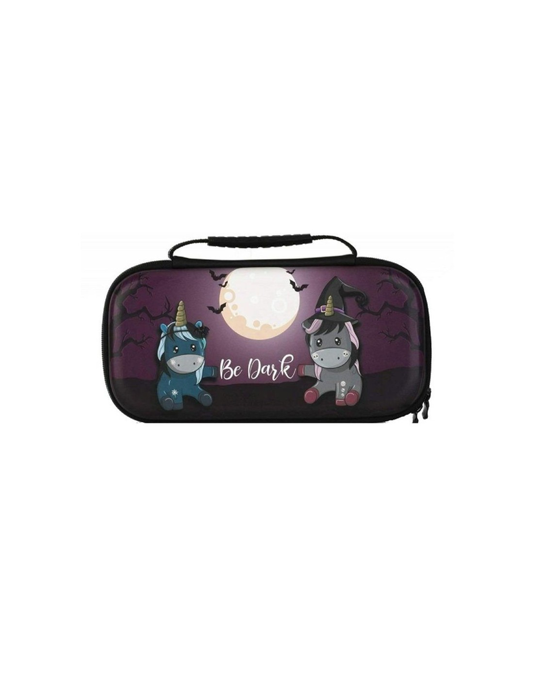 Funda equipada con un cómodo asa de transporte. Cómoda y fácil de usar en tus viajes. Compatible con Switch y Switch Lite 1 red de almacenakje para guardar tus accesorios de pequeño tamaño como cables HDMI, Joy-Cons, 8 espacios para guardar cartuchos de juegos Funda protectora con doble apertura