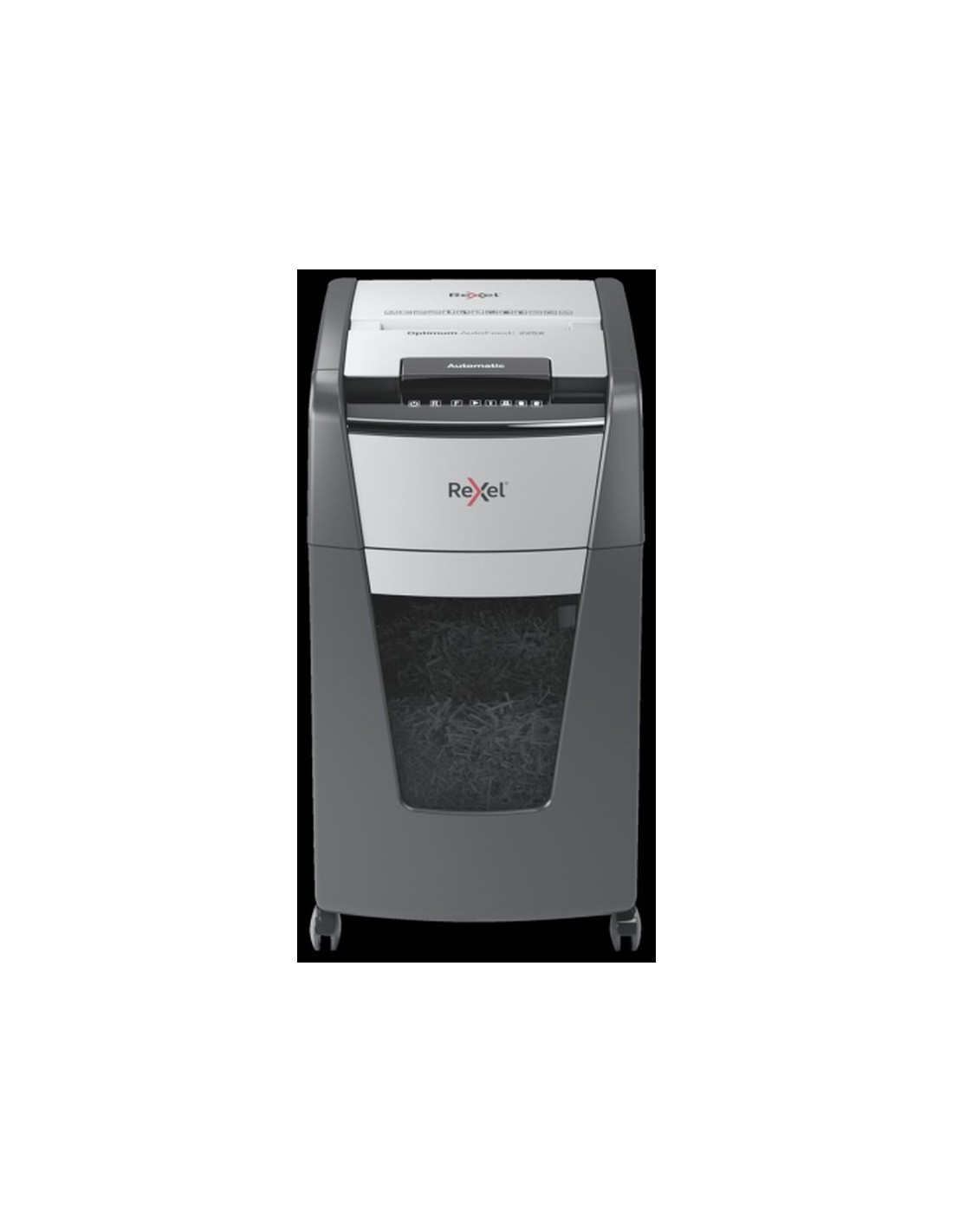 Destructora automtica Rexel Optimum AutoFeed 225X de corte en partculas La destructora de corte en partculas Optimum AutoFeed 225X tritura automticamente hasta 225 hojas de papel A4 (80 grs.) a la vez, en partculas P-4 (4x25 mm). Esta destructora de alimentacin automtica es una trituradora de oficina sofisticada, con una papelera extrable de 60 litros. No es necesario alimentar manualmente el papel, ni quitar grapas y clips de papel primero, esta destructora de papel automtica har todo el trabajo por ti. aractersticas Alimentacin automtica de hasta 225 hojas de papel A4 (80 grs.) a la vez. Ranura manual de hasta 10 hojas. Corte en partculas P-4 (4x26mm). Papelera extrable con capacidad para 60l. Ruedas giratorias para facilitar el movimiento en el lugar de trabajo. Tecnologa anti atascos. Destruye tarjetas de crdito, grapas y clips. Tiempo de funcionamiento continuo de 30 minutos con enfriamiento del ventilador. El modo de suspensin se activa despus de 3 minutos sin uso. Panel de control tctil. Nivel de ruido ultra silencioso de 55 dBA. Sensor de compartimento lleno con infrarrojos. Garanta de 2 aos, garanta de ctter de 2 aos. Especificaciones Referencia 2020225xeu Color Negro Dimensiones 415 x 735 x 465 Tiempo de funcionamiento desde fro 30 Periodo de garanta 2 aos Mxima amplitud de entrada (mm) 230 Capacidad de corte (hojas 80 grs) Alimentacin automtica 225 hojas (mx.). Ranura manual de hasta 10 hojas (80 grs.). Tipo de corte Corte en partculas Capacidad de la papelera en l 60 Material destruido Tarjetas de crdito, grapas y clips. Peso 18 https://www.rexeleurope.com/es-es/products/destructora-autom%C3%A1tica-rexel-optimum-autofeed-225x-de-corte-en-part%C3%ADculas_2020225xeu
