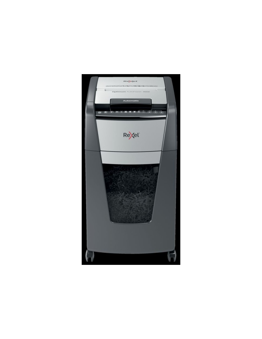 Caractersticas Alimentacin automtica de hasta 300 hojas de papel A4 (80 grs.) a la vez. Ranura manual de hasta 10 hojas. Corte en partculas P-4 (4x26mm). Papelera extrable con capacidad para 60l. Ruedas giratorias para facilitar el movimiento en el lugar de trabajo. Tecnologa anti atascos. Destruye tarjetas de crdito, grapas y clips. Tiempo de funcionamiento continuo de 60 minutos con enfriamiento del ventilador. El modo de suspensin se activa despus de 3 minutos sin uso. Panel de control tctil con bloqueo de cdigo pin para la mxima confianza y seguridad. Nivel de ruido ultra silencioso de 55 dBA. Sensor de compartimento lleno con infrarrojos. Garanta de 2 aos, garanta de ctter de 2 aos. Especificaciones Referencia 2020300xeu Color Negro Dimensiones 465 x 735 x 490 Tiempo de funcionamiento desde fro 60 Periodo de garanta 2 aos Mxima amplitud de entrada (mm) 230 Capacidad de corte (hojas 80 grs) Alimentacin automtica 300 hojas (mx.). Ranura manual de hasta 10 hojas (80 grs.). Tipo de corte Corte en partculas Capacidad de la papelera en l 60 Material destruido Tarjetas de crdito, grapas y clips. Peso 18,7 https://www.rexeleurope.com/es-es/products/destructora-autom%c3%a1tica-rexel-optimum-autofeed-300x-de-corte-en-part%c3%adculas_2020300xeu/