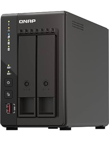 TS-253E-8G CPU Procesador Intel® Celeron® J6412 de cuatro núcleos y cuatro hilos, con potencia de hasta 2,6 GHz Arquitectura de CPU x86 de 64 bits Procesadores gráficos Intel® UHD Graphics Unidad de coma flotante Motor de cifrado (AES-NI) Transcodificación acelerada de hardware Memoria del sistema 8 GB RAM Memoria máxima 8 GB Memoria flash 4 GB (protección del sistema operativo de doble arranque) Bahía de unidades 2 unidades SATA de 3,5 a 6Gb/s El sistema se envía sin unidad de disco duro. Para ver la lista de compatibilidad de discos duros, visite https://www.qnap.com/compatibility/ Compatibilidad de unidades 3.5-inch SATA hard disk drives 2.5-inch SATA solid state drives Intercambiable en caliente Ranura M.2 2 ranuras PCIe M.2 2280 Gen 3 x2 Compatible con SSD NVMe PCIe Gen 3 y Gen 4. Consulte la compatibilidad en https://www.qnap.com/compatibility/. Compatibilidad con aceleración de caché SSD Puerto 2,5 GbE (2,5G/1G/100M) 2 (2,5G/1G/100M/10M) Wake-on-LAN (WOL) Jumbo Frame Puerto USB 2.0 2 Puerto USB 3.2 Gen 2 (10 Gbps) 2 puertos Tipo-A Salida HDMI 2 x HDMI 1.4b ( up to 3840 x 2160 @ 30Hz ) Factor de forma Torre Indicadores LED Alimentación/Estado, LAN, USB, unidad de disco duro 1-2 Botones Encendido, restablecimiento, copia de un toque USB Dimensiones (Altura x Anchura x Profundidad) 165 × 102 × 220,6 mm Dimensions do not include foot pad (foot pad may be up to 30mm / 1.18 inches high depending on model) Peso (neto) 2.57 kg Peso (bruto) 2.57 kg Temperatura operativa 0 - 40 °C (32 °F - 104 °F) Temperatura de almacenamiento -20 - 70°C (-4°F - 158°F) Humedad relativa 5 ~ 95 % de humedad relativa sin condensación, bulbo húmedo: 27 °C (80,6 °F) Unidad de alimentación eléctrica Adaptador de 60 W/65 W, 100-240 V Consumo de energía: Modo suspensión de disco duro: 20.943 W Consumo de energía: Modo de funcionamiento, típico 24.238 W Ventilador 1 de 70 mm, 12 V de CC Advertencia del sistema Timbre Ranura de seguridad Kensington Garantía estándar 3 N. máx. de conexiones simultáneas (CIFS): con memoria máx. 1500 https://www.qnap.com/es-es/product/ts-253e/specs/hardware