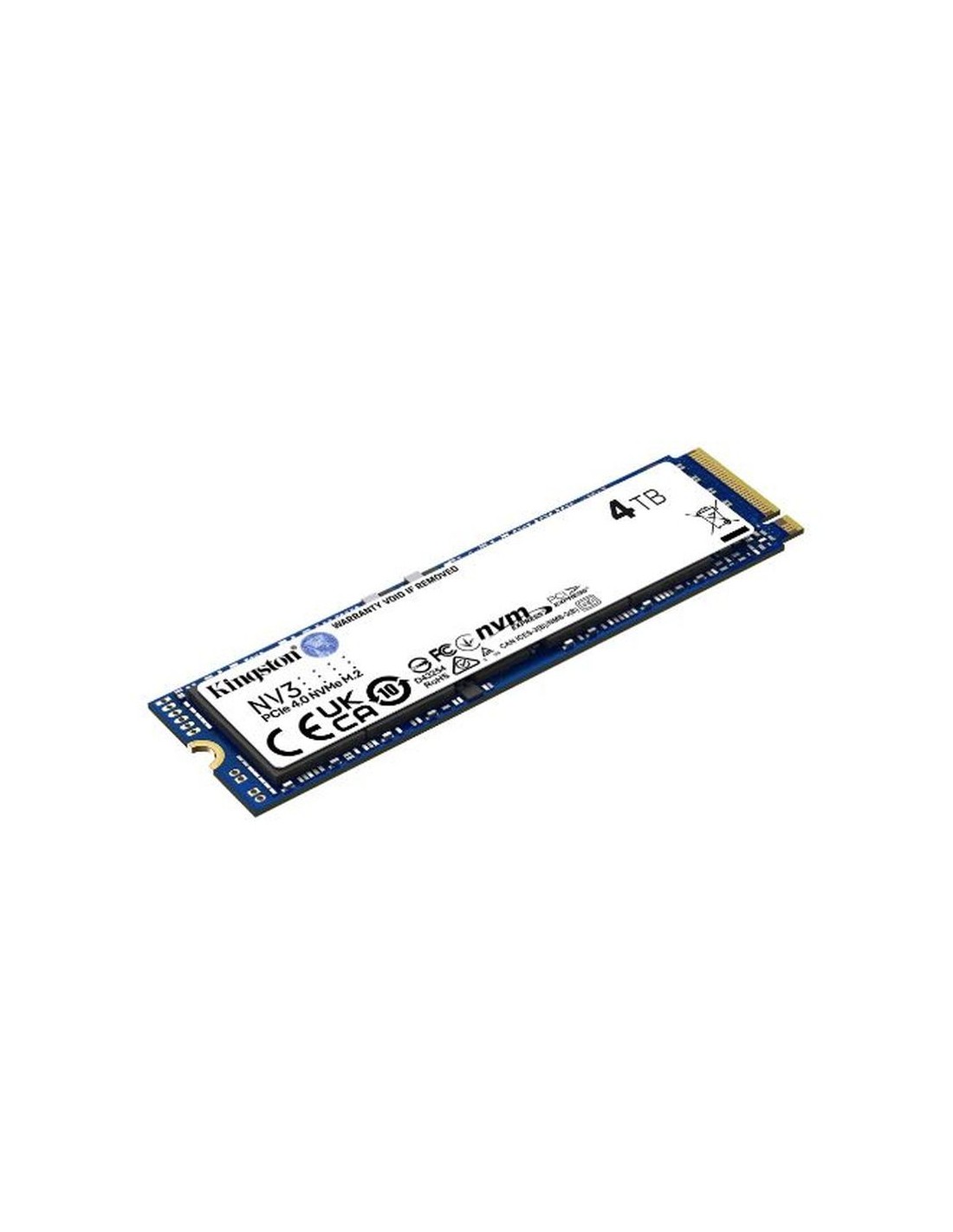 4 TB M.2 PCI Express 4.0 Velocidad de lectura: 6000 MB/s Velocidad de escritura: 5000 MB/s 3D NAND NVMe Componente para: PC/ordenador portátil Kingston Technology NV3. SDD, capacidad: 4 TB, Factor de forma de disco SSD: M.2, Velocidad de lectura: 6000 MB/s, Velocidad de escritura: 5000 MB/s, Componente para: PC/ordenador portátil Peso y dimensiones Altura 3,8 mm Ancho 22 mm Peso 6,6 g Profundidad 80 mm Condiciones ambientales Intervalo de temperatura operativa 0 - 70 °C Intervalo de temperatura de almacenaje -40 - 85 °C Vibración operativa 10 G Empaquetado Altura del paquete 184,2 mm Ancho del paquete 129,5 mm Peso del paquete 29,3 g Profundidad del paquete 8,4 mm Datos logísticos Alto de la caja principal 69,8 mm Ancho de la caja principal 135,9 mm Cantidad por caja 10 pieza(s) Longitud de la caja 203,2 mm País de origen China, Taiwán Peso del envase completo 370,46 g Características Tamaño de la unidad SSD M.2 2280 (22 x 80 mm) Componente para PC/ordenador portátil Factor de forma de disco SSD M.2 Interfaz PCI Express 4.0 NVMe Si SDD, capacidad 4 TB calificación TBW 1280 Tiempo medio entre fallos 2000000 h Tipo de memoria 3D NAND Velocidad de lectura 6000 MB/s Velocidad de escritura 5000 MB/s
