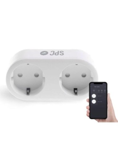 ENCHUFE INTELIGENTE PARA UNA DOBLE CARGA SPC Clever Plug Dual es la solución perfecta para los que quieren aprovechar al máximo el espacio ya que este enchufe inteligente Wi-Fi te permite conectar dos dispositivos a la vez. Además, como es inteligente, te permite enchufar cualquier electrodoméstico y controlarlo desde la app SPC IoT, en cualquier momento y desde cualquier lugar. CREA RUTINAS Y CONSIGUE LA MÁXIMA COMODIDAD Acabas de llegar a casa después de una jornada de trabajo y solo piensas en descansar en el sofá de casa; pero tienes que poner la lavadora, el lavavajillas Con los enchufes inteligentes podrás establecer reglas de encendido y apagado o activar y desactivar tus aparatos desde el salón o desde cualquier otro sitio con tu smartphone. ¡Descubre todas las posibilidades que tienes a tu alcance! COMPATIBLE CON LOS PRINCIPALES ASISTENTES DE VOZ Puedes vincular tu enchufe inteligente con Google Home y Amazon Alexa con la skill y action de la app SPC IoT. Aprovéchate al máximo de la comodidad que te ofrecen los Asistentes de Voz y crea un hogar completamente inteligente. CONTROLA TU CONSUMO ELÉCTRICO Y AHORRA DINERO ¿Recuerdas esos días en que la calefacción se enciente aunque no haya nadie en casa y sientes que estás desperdiciando energía y dinero? Con la posibilidad de apagar o encender tus aparatos eléctricos remotamente gracias al uso de un enchufe inteligente hubieras consumido menos energía y ahorrado dinero a final de mes. También podrás monitorizar el consumo de cada aparato para un uso más eficiente. Especificaciones Wifi 2.4GHz. Fuente de alimentación 230V. Potencia máxima: 3680W. Dimensiones: L105xAlt50xA44 mm. Contenido de la caja: enchufe inteligente y guía rápida. Compatible con Android. IOS. Amazon Alexa. Google Assistant.