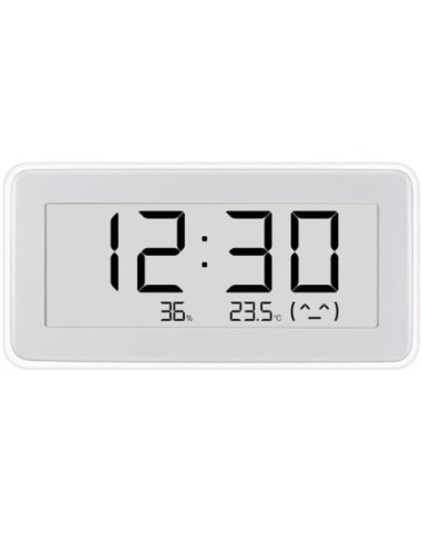 Xiaomi Temperature and Humidity Monitor Clock La hora y más datos en todo momento Controla la temperatura y la humedad Control de la temperatura y la humedad Pantalla de tinta electrónica Conectividad inteligente Colocación flexible Con los indicadores de confort, incluso los pequeños cambios de temperatura y humedad pueden controlarse de un vistazo Control continuo de los cambios de temperatura y humedad en interiores Cuidado durante todo el año de la salud de tu familia La temperatura y la humedad están estrechamente relacionadas con la salud respiratoria, las alergias, la salud de la piel y una amplia variedad de problemas de salud. Controlar y ajustar la temperatura y la humedad en invernaderos, dormitorios, habitaciones para mascotas, despachos y otras habitaciones de la casa puede ayudar a mejorar tu comodidad y proteger la salud de tus familiares y mascotas. Temperatura ambiente óptima: De 19 a 27 °C Humedad relativa óptima: Del 20 al 85 % de humedad relativa Un toque de belleza para tu vida Controlar y ajustar la temperatura y la humedad de tu invernadero, cocina, despensa o baño de manera oportuna puede ayudarte a cultivar mejor tus plantas y a almacenar alimentos y otros artículos, además de impedir la proliferación de bacterias. Controla la temperatura y la humedad de lugares específicos Invernadero Cocina Despensa Baño Comprueba el grado de confort de un vistazo con emoticonos intuitivos ¿Por qué el monitor de temperatura y humedad muestra un ceño fruncido cuando crees que la temperatura es perfecta? Esto puede ser porque, cuando crees que la temperatura ambiente es perfecta, ignoras el nivel de humedad. Con los emoticonos visuales, puedes comprobar fácilmente el grado de confort Visualiza la pantalla de forma clara desde diferentes ángulos Monitor de temperatura y humedad con detección precisa Gran pantalla de tinta electrónica Amplio ángulo de visualización La pantalla de tinta electrónica de 3,7 (88 x 33 mm) ofrece un consumo de energía ultrabajo y una duración de la batería de aproximadamente un año, con solo dos pilas de botón. La pantalla parece más bien texto impreso y se puede ver de forma fácil y clara desde varios ángulos. Chips y sensores de alta precisión Fíate de la precisión de los datos mostrados El Xiaomi Temperature and Humidity Monitor Clock ofrece datos precisos gracias a un chip de reloj en tiempo real (RTC) de alta precisión y un exclusivo sensor Sensirion suizo de alta precisión, por lo que muestra la hora correcta en alta resolución y detecta cada cambio en la temperatura y la humedad. Un monitor inteligente de temperatura y humedad que se anticipa a tus necesidades Historial de temperatura y humedad Registra cada cambio. El Xiaomi Temperature and Humidity Monitor Clock puede registrar la evolución de la temperatura y la humedad de los últimos seis meses. Puedes buscar y añadir el Xiaomi Temperature and Humidity Monitor Clock en la aplicación Mi Home/Xiaomi Home para ver los detalles del historial. Ajuste inteligente de la temperatura y la humedad Cuando hace calor, el aire acondicionado puede encenderse y apagarse de forma automática configurando una temperatura preestablecida en la aplicación Mi Home/Xiaomi Home. Cuando la habitación está seca, el humidificador puede encenderse y apagarse de forma automática configurando un nivel de humedad preestablecido en la aplicación Mi Home/Xiaomi Home. Probado por profesionales para garantizar una calidad fiable El diseño detallado del monitor ofrece un aspecto elegante. El diseño de varias piezas permite colocarlo de forma flexible Coloca el Xiaomi Temperature and Humidity Monitor Clock sobre la mesa, en la pared o en la puerta del frigorífico Con un peso de tan solo 60 g y un grosor de 10,1 mm, el Xiaomi Temperature and Humidity Monitor Clock puede colocarse fácilmente sobre una mesa mediante el soporte, fijado en una pared o acoplado con el imán suave, lo que facilita su uso y hace que sea visualmente atractivo. Puedes colocar el Xiaomi Temperature and Humidity Monitor Clock como quieras sobre la mesita de noche, un escritorio, la puerta del frigorífico o la pared. Superficie lisa distintiva Aspecto más elegante. El diseño suave y redondeado de la pantalla de metacrilato ofrece un aspecto más elegante Reloj para varias zonas horarias Cuando se enciende por primera vez, el reloj muestra las 00:00. Una vez conectado el reloj a la aplicación Mi Home/Xiaomi Home, la hora mostrada se sincronizará automáticamente con la hora mostrada en el smartphone. Opciones de formato de la hora de 12 y 24 horas El Xiaomi Temperature and Humidity Monitor Clock ofrece opciones de formato de la hora de 12 y 24 horas. Puede configurarse en cualquier momento conectándose a la aplicación Mi Home/Xiaomi Home. Probado por profesionales para garantizar una calidad fiable Se ha realizado una serie de pruebas de certificación de expertos para garantizar la calidad integral del producto. Especificaciones Nombre del producto Xiaomi Temperature and Humidity Monitor Clock Rango de medición de temperatura De 0 a 60 °C Materiales ABS, PC Conectividad inalámbrica Bluetooth de baja energía 5.0 Dimensiones del producto 110 x 55 x 10,1 mm Modelo de pila CR2032 (2, deben comprarse por separado) Rango de medición de humedad Del 0 al 99 % de humedad relativa Peso neto del producto 57 g Modo de formato de la hora 12 horas/24 horas Tensión de funcionamiento De 2,5 a 3 V de CC Contenido del paquete 1 Xiaomi Temperature and Humidity Monitor Clock 1 soporte 1 soporte de montaje en pared 1 imán flexible 1 manual de usuario 1 tarjeta de garantía