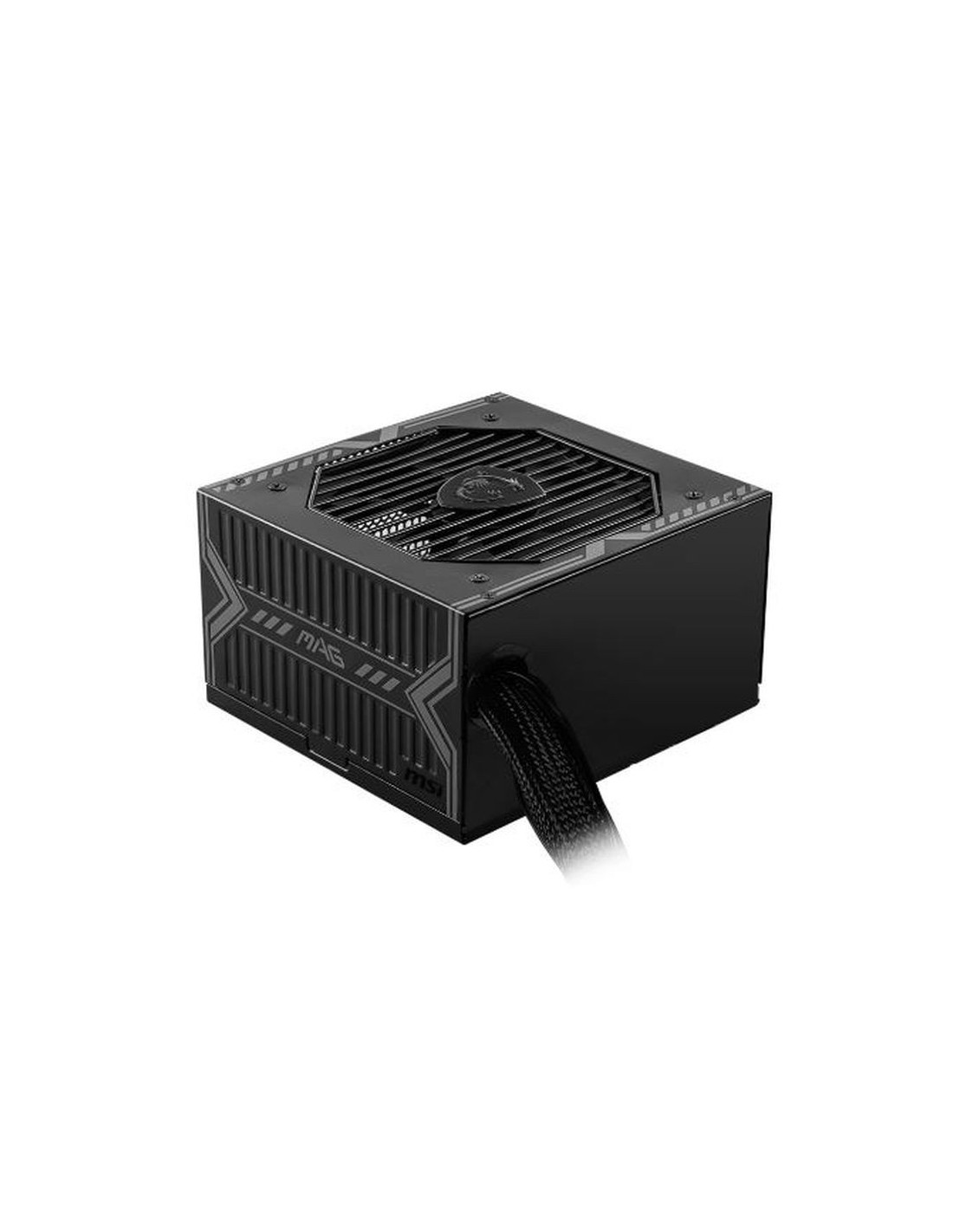 MSI MAG A550BN, 550 W, 100 - 240 V, 50 - 60 Hz, 8 A, 4 A, Activo 550 W 100 - 240 V 50 - 60 Hz Alimentador de energía para tarjeta madre: 20+4 pin ATX PC ATX 80 PLUS Bronze Activo 12 cm Negro MSI MAG A550BN. Potencia total: 550 W, Voltaje de entrada AC: 100 - 240 V, Frecuencia de entrada AC: 50 - 60 Hz. Alimentador de energía para tarjeta madre: 20+4 pin ATX, Longitud del cable de alimentación de la placa base: 60 cm, Tipo de cableado: No modular. Utilizar con: PC, Factor de forma de fuente de alimentación (PSU): ATX, Certificación 80 PLUS: 80 PLUS Bronze. Color del producto: Negro, Tipo de enfriamiento: Activo, Diámetro de ventilador: 12 cm. Ancho: 150 mm, Profundidad: 140 mm, Altura: 86 mm CONTROL DE ENERGÍA Corriente máxima de entrada (@110V) 8 A Potencia combinada (+12 V) 546 W Potencia combinada (-12V) 3,6 W Corriente máxima de salida (+12V) 45,5 A Corriente máxima de salida (-12V) 0,3 A Corriente máxima de entrada (@220V) 4 A Potencia combinada (3,3 V) 110 W Corriente máxima de salida (+3.3V) 20 A Potencia combinada (+5 V) 110 W Potencia combinada (+5 VSB) 12,5 W Corriente máxima de salida (+5V) 20 A Corriente máxima de salida (+5Vsb) 2,5 A Voltaje de entrada AC 100 - 240 V Frecuencia de entrada AC 50 - 60 Hz Corrección del factor de potencia tipo (PFC) Activo Eficiencia 85% Funciones de protección de poder Sobreintensidad, Sobretensión, Sobrevoltaje, Sobrecalentamiento, Cortocircuito Potencia total 550 W PESO Y DIMENSIONES Altura 86 mm Ancho 150 mm Profundidad 140 mm PUERTOS E INTERFACES Conectores de poder PCI Express (6 + 2 pin) 2 Conector de poder ATX (20 + 4 pin) No Conector de potencia ATX (24 pines) No Conectores de poder (4 pin) periferales (Molex) 2 Conector de alimentación EPS (4+4 pines) Si CPU conector de alimentación (4 +4 pines) Si Conector de energía EPS (8-pin) No Alimentador de energía para tarjeta madre 20+4 pin ATX Longitud del cable de alimentación de la placa base 60 cm Número de conectores de energía SATA 5 Tipo de cableado No modular DESEMPEÑO Certificación 80 PLUS 80 PLUS Bronze Factor de forma de fuente de alimentación (PSU) ATX Utilizar con PC DISEÑO Color del producto Negro Diámetro de ventilador 12 cm Interruptor de encendido/apagado integrado Si Número de ventiladores 1 Ventilador(es) Tipo de enfriamiento Activo DATOS LOGÍSTICOS Código de Sistema de Armomización (SA) 84733020