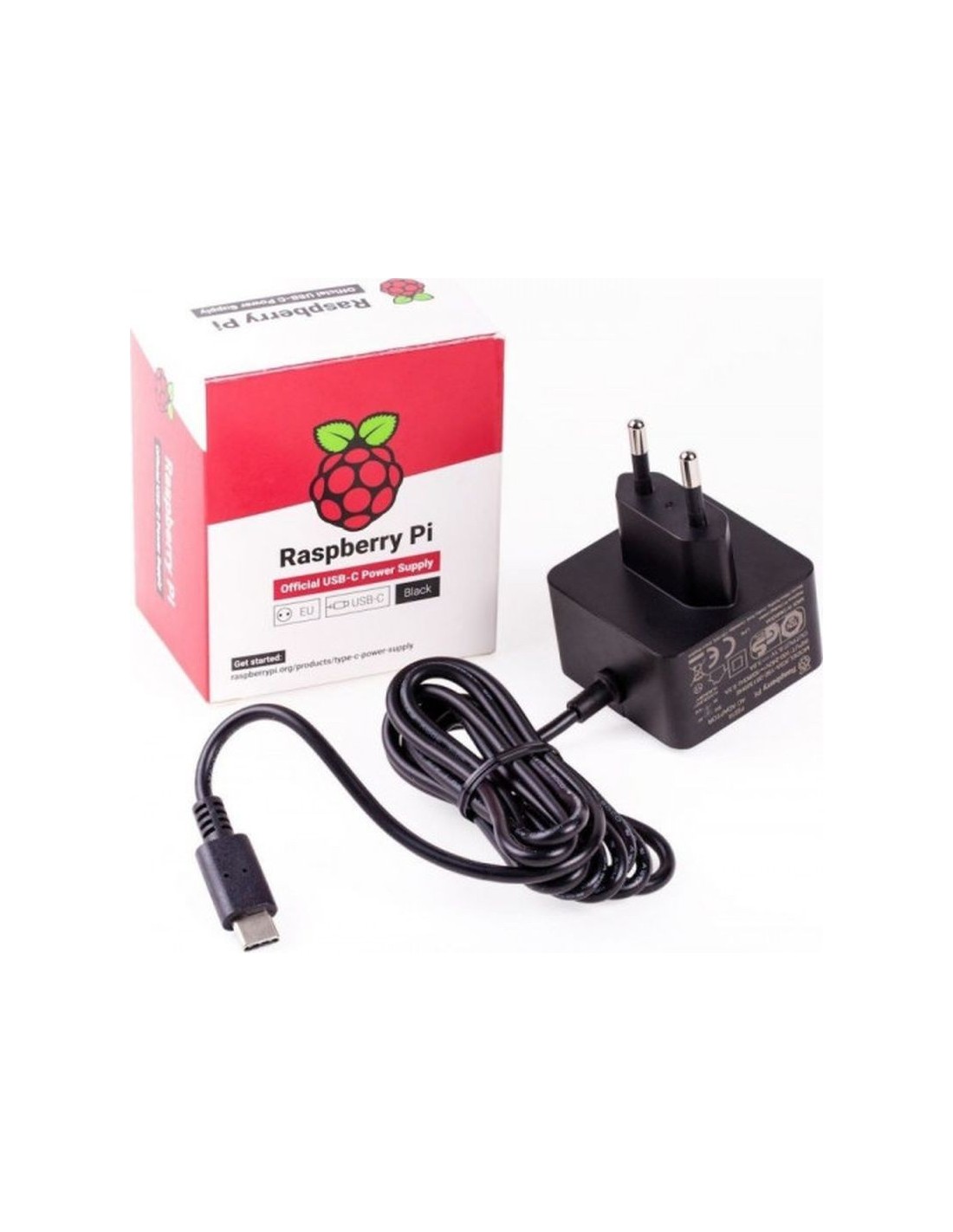 Esta fuente de alimentación oficial raspberry Pi es la opción perfecta para impulsar su nueva placa de raspberry Pi 4 Modelo B. Esta PSU funciona con todas las variantes de la placa raspberry Pi 4, la placa de 1 GB, 2 GB y 4 GB. Se trata de una fuente de alimentación de 5,1 V y 3 A con un conector USB-C en un extremo y una toma de enchufe en el otro. Simplemente conecte el USB-C a su Pi 4 y enchufe la toma a la red y ¡ya está listo! Compatible con raspberry Pi 4 Modelo B. Negro (también disponible en blanco) Conector USB-C. enchufe UE - Tensión de entrada: 90 ? 264V - Tensión de salida: 5.1 V - Corriente de Salida: 3A - Tipo de conector macho: Conector macho europeo - Conector de entrada: Conector hembra - Conector de salida: USB Tipo C - Potencia nominal: 15.3W - Type: Fuente de alimentación - Número de salidas: 1 https://www.raspberrypi.org/products/type-c-power-supply/