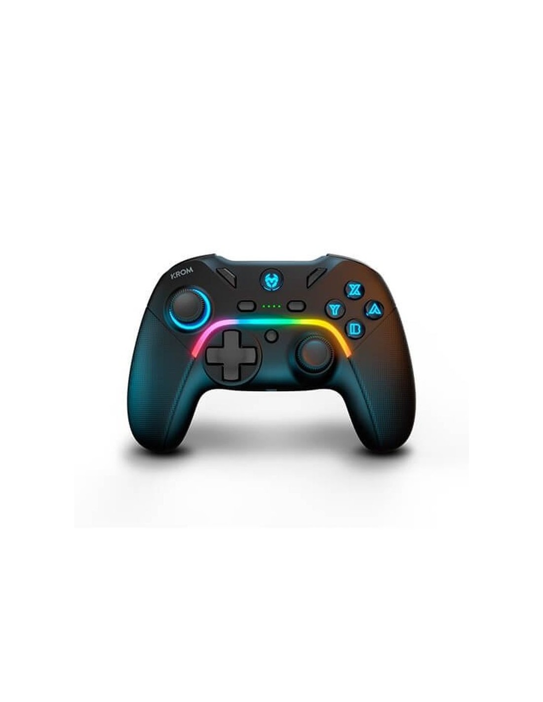 KAYROS Krom Kayros es un mando bluetooth ergonómico, pensado para la competición, que ofrece un excelente rendimiento. Compatible con varias plataformas mediante Bluetooth. Se trata de un gamepad RGB con muy buena autonomía perfecto para disfrutar de juegos tipo shooter o arcade. Juega donde quieras Podrás jugar donde quieras con Krom Kayros, un mando inalámbrico con una batería de litio de 10-12 horas autonomía, pudiendo sentir la libertad de no tener cables a una distancia máxima de 10 metros. Diseñado para el juego intensivo El mando Krom Kayros ha sido desarrollado para poder disfrutar de las largas sesiones de juego cómodamente, de manera intensiva y sin notar ningún cansancio en manos o brazos. La ergonomía está garantizada gracias a una distribución de los botones pensada para una pulsación natural e intuitiva. Contrólalo todo Este gamepad para jugadores cuenta con laterales texturizados para una mayor comodidad, facilitando un buen agarre. Tiene joysticks analógicos y botones con vibración para sentir cada movimiento y vivir una experiencia más realista en la partida. Podrás elegir el nivel de vibración presionando el botón TURBO y el botón + o - en función del modo que quieras: desde ninguna vibración, vibración débil, media o fuerte. Asigna esta función a los botones A, B, X, Y, L y R y sé el número uno. De igual manera, podrás elegir la velocidad con la función Auto-Fire: selecciona entre 5, 12 o 20 veces por segundo y no pierdas tiempo decisivo. Botones fiables y duraderos Buen tacto y gran capacidad de respuesta es lo que ofrece este mando profesional para jugar que brinda, además, múltiples opciones de personalización. Muévete como quieras con este mando gaming para jugadores exigentes: con una buena distribución con las dos palancas analógicas colocadas de manera diagonal, es un mando recomendado también para los juegos FPS. Gamepad para smartphones Krom Kayros es también un gamepad para smartphones. Integra un soporte retráctil robusto que permite colocar cualquier teléfono móvil y echar cuantas partidas se quiera de juegos arcade. Compatibilidad multiplataforma Podrás utilizar Krom Kayros en tu PC, conectándolo a través Bluetooth o bien mediante su cable. Disfruta también de tus juegos favoritos en Switch, Android e iOS con este gamepad inalámbrico mediante su Bluetooth 5.0. General Tipo del artículo: Gaming Marca: KROM Garantía: 3 Part Number: NXKROMKAYROS Categorías: OTROS PERIFÉRICOS Reacondicionado: No Reposición - Etiqueta: No Peso Volumetrico 0.48 Kg. Detalles técnicos Accesorios Consolas: Mandos Dispositivo de entrada Joystick analógico: Si Color Color: Negro Peso y dimensiones Peso: 260 g Altura: 150.2 mm Ancho: 155 mm Profundidad: 59 mm