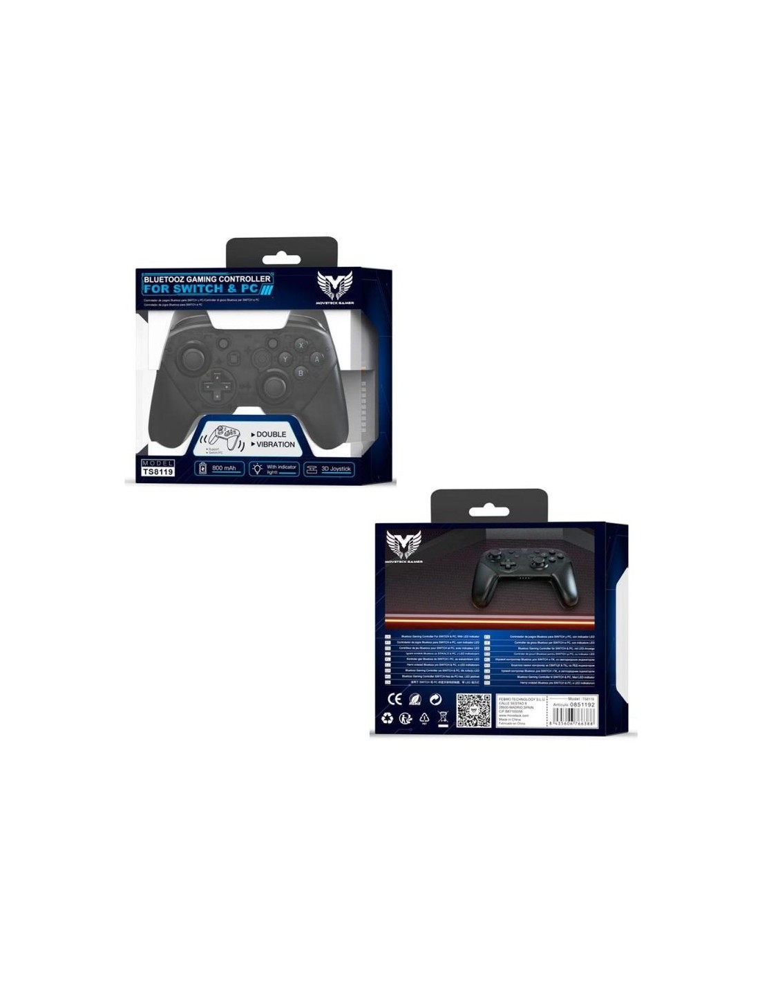 Mando Gamepad Inalámbrico Nintendo Switch - PC / 800 mAh / Bt 5.0 / TS8119 / MTK / 0851192 Especificaciones técnicas: - Bluetooth: 5.0 - Josystick 3d con doble vibración - Bateria: 800 mAh - Indicadores Led - Táctil - Compatible: PC, Switch - Color: Negro