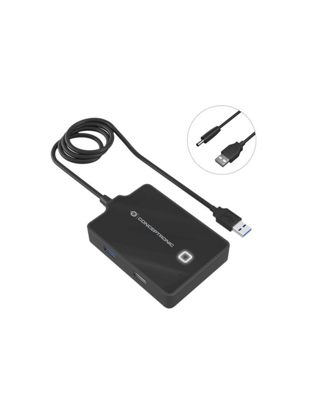 HUBBIES10B CONCENTRADOR USB 3.0/2.0 DE 4 PUERTOS, CABLE DE 90 CM SKU 110517007101 Agregue 1 puerto USB 3.0 y 3 puertos USB 2.0 a su PC/portátil Supervelocidad USB 3.0 (5 Gb/s) Cuenta con un cable de 90 cm para mayor alcance Cable de alimentación USB-DC incluido para usar con cualquier cargador USB Instalación sencilla de conectar y usar ¡Este concentrador USB 3.0/2.0 de 4 puertos hace posible expandir su netbook, notebook o PC con 4 puertos adicionales usando solo un puerto USB libre! Puede agregar fácilmente hasta 4 dispositivos o dispositivos USB a su netbook, notebook o PC. Color Negro EAN 4015867226711 Número de modelo MARIDOS10B Contenidos del paquete Concentrador USB Cable de alimentación USB-CC Guía de instalación rápida multilingüe Peso del producto (kg) 0.089 Ancho del producto (mm) 87 Profundidad del producto (mm) 55 Altura del producto (mm) 15 Longitud del cable 90cm Interfaz de host USB tipo A macho Puertos 4 puertos versión USB 3.0 (3.1/3.2 de 1.ª generación) https://www.conceptronic.net/conceptronic_en/hubbies10b-4-port-usb-3-0-2-0-hub-90cm-cable-110517007101