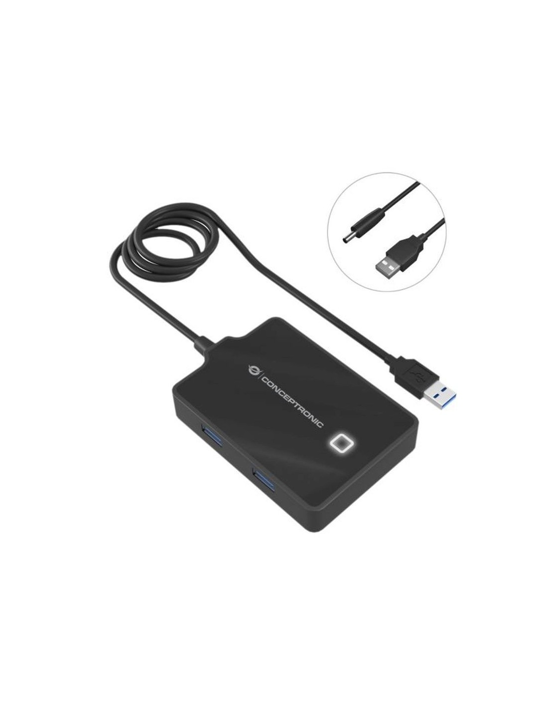 HUBBIES11B HUB USB 3.0 DE 4 PUERTOS, CABLE DE 90 CM SKU 110517107101 Agregue 4 puertos USB 3.0 a su PC / computadora portátil USB 3.0 de alta velocidad (5 Gb / s) Cuenta con un cable de 90 cm para un mayor alcance Cable de alimentación USB-DC incluido para usar con cualquier cargador USB Instalación sencilla Plug and Play Saltar al final de la galería de imágenes Saltar al principio de la galería de imágenes Detalles ¡Este concentrador USB 3.0 de 4 puertos hace posible expandir su netbook, computadora portátil o PC con 4 puertos USB 3.0 adicionales con solo usar un puerto USB 3.0 libre! Puede agregar fácilmente hasta 4 dispositivos USB o gadgets a su netbook, computadora portátil o PC. Más información Color Negro EAN 4015867226728 Número de modelo MARIDOS11B Contenidos del paquete Concentrador USB Cable de alimentación USB-CC Guía de instalación rápida multilingüe Peso del producto (kg) 0,088 Ancho de producto (mm) 87 Profundidad del producto (mm) 55 Altura del producto (mm) 15 Longitud del cable Los 90cm Puertos 4 puertos Versión USB 3.0 (3.1 / 3.2 Gen 1) https://www.conceptronic.net/conceptronic_en/hubbies11b-4-port-usb-3-0-hub--90cm-cable-110517107101