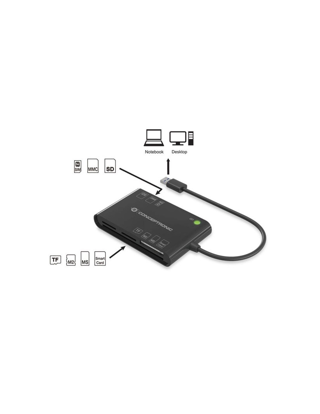 Diseño Color del producto: Negro Indicadores LED: sí País de origen: porcelana Peso y tamaño Peso: 26 g Altura: 12,5 milímetros Profundidad: 37,5 milímetros Ancho: 67,5 milímetros Características Conecta y reproduce: sí Tarjetas de memoria compatibles: MMC, MS Micro (M2), Memory Stick, MicroSD (TransFlash), SD, SDHC, SDXC Soporte de tarjeta SIM: sí Métodos de pago admitidos: EMV (Chip y PIN) Datos logísticos Altura del embalaje principal (exterior): 360 mm Ancho de embalaje principal (exterior): 360 mm Peso bruto del embalaje principal (exterior): 5900 g Cantidad por paquete principal (exterior): 100 pieza (s) Longitud del embalaje principal (exterior): 380 milímetros Requerimientos mínimos del sistema Compatibilidad con Mac: sí Puertos e interfaces Interfaz: USB 3.2 de 1.a generación (3.1 de 1.a generación) Embalaje Peso del paquete: 22 g Altura del paquete: 180 mm Ancho del paquete: 70 mm Profundidad de embalaje: 20 mm