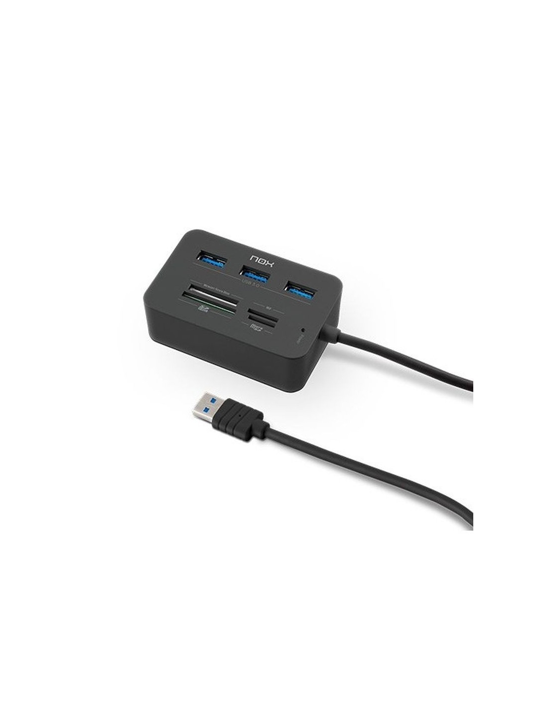 CONCENTRADOR USB 3.0 DE 3 PUERTOS Y LECTOR DE TARJETAS Hub USB y lector de tarjetas 3 puertos USB 3.0 de alta velocidad Compatible con Windows, MacOS y Linux Conectar y usar: fácil configuración Especificaciones generales + Dimensiones 77x50x26mm Longitud del cable 280 mm Puertos disponibles 3X USB 3.0 Memory Stick dúo SD SDHC M2 Micro SD Compatibilidad Windows XP/VISTA/7/8/10 | MacOS 10.X | linux https://www.nox-xtreme.com/en/accessories/reader-one