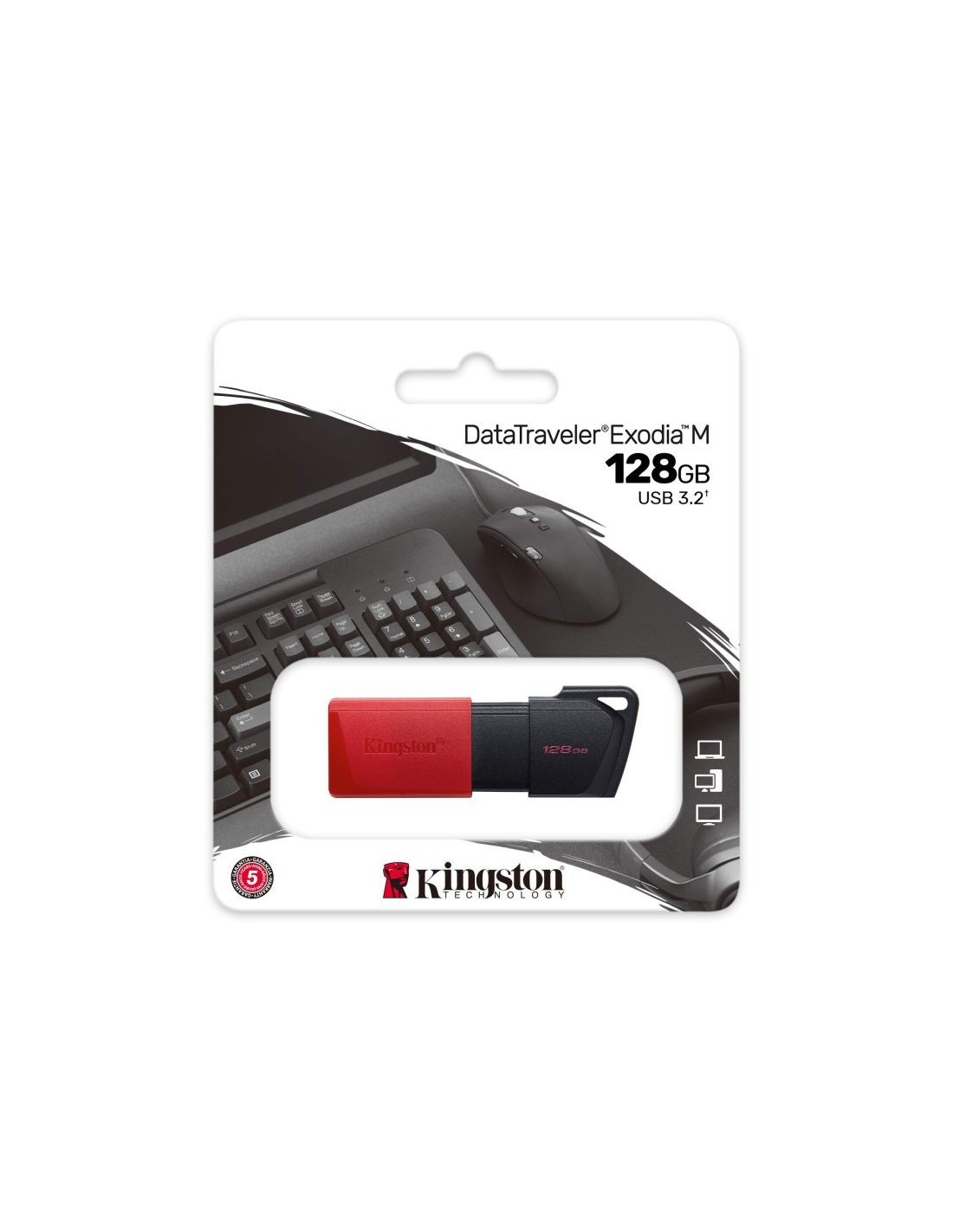 Kingston 128gb dataTraveler Exodia alcanza un rendimiento de grado USB 3.2 Gen 1, que facilita el acceso a portátiles, equipos de sobremesa, monitores y otros dispositivos digitales. DT Exodia permite rápidas transferencias y facilita el almacenamiento de documentos, música, vídeo y mucho más. Por su práctico diseño y modernos colores, son ideales para el uso diario en el trabajo, el hogar, los estudios o dondequiera que lleve sus datos. DT Exodia está disponible en capacidades de hasta 256 GB¹. Incluye asistencia técnica y la legendaria fiabilidad de Kingston. Diseño Color del producto Negro Desempeño Capacidad 128 GB Versión USB 3.0