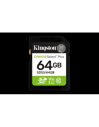 Kingston Technology 64 GB SDXC Canvas Select Plus Gen3 100 MB/s C10 UHS-I U1 V10 Para videocámaras Full HD en 1080p La tarjeta SD Canvas Select Plus ofrece un rendimiento fiable con velocidades de hasta 150 MB/s*, por lo que es ideal para cámaras y grabación de vídeos Full HD. Con velocidades de UHS-I categoría 10, garantiza un rendimiento fluido y constante. Es duradero y versátil; perfecto para las necesidades diarias de almacenamiento. Las tarjetas SD Canvas Select Plus de Kingston están diseñadas para ofrecer un rendimiento confiable, buena velocidad y durabilidad al transferir y trabajar con fotos de alta resolución o al grabar y editar vídeos de alta definición. Alcanzan velocidades UHS-I de categoría 10 de hasta 150 MB/s* para facilitar el almacenamiento y agilizar las transferencias, mediante una interfaz de vídeo de categoría 30 con la que podrás grabar vídeos Full HD de calidad cinematográfica**. La tarjeta SD Canvas Select Plus está disponible en una variedad de capacidades hasta 1 TB*** y cuenta con garantía de por vida. Velocidades impresionantes Increíbles velocidades de lectura de hasta 150 MB/s*. Captura de imágenes y vídeos en Full HD (1080p) Optimizada para cámaras y grabaciones de vídeo en Full HD. Capacidades amplias Capacidades de hasta 1 TB*** para guardar fotos y vídeos Full HD. Resistente Para mayor tranquilidad, las tarjetas se someten a rigurosas pruebas, y han demostrado ser resistentes al agua y a las temperaturas extremas y a los rayos X.**** Memoria Clase de memoria flash Clase 10 Sistemas de archivos soportados exFAT Clase de velocidad de vídeo V10 Clase de velocidad UHS Class 1 (U1) Tipo de memoria interna UHS-I Velocidad de lectura 100 MB/s Tipo de tarjeta flash SD Capacidad 64 GB Peso y dimensiones Peso 2,3 g Altura 2,1 mm Profundidad 24 mm Ancho 32 mm Control de energía Voltaje de memoria 3.3 V Condiciones ambientales Intervalo de temperatura de almacenaje -40 - 85 °C Intervalo de temperatura operativa -25 - 85 °C Empaquetado Altura del paquete 114,3 mm Profundidad del paquete 5,59 mm Ancho del paquete 101,6 mm Cantidad por paquete 1 pieza(s) Peso del paquete 13,27 g Otras características País de origen China, Taiwán Características Color del producto Negro, Verde, Blanco Datos logísticos Cantidad por caja 25 pieza(s) Peso del envase completo 369 g Alto de la caja principal 94 mm Longitud de la caja 120,7 mm Ancho de la caja principal 114,3 mm Fabricante Representante legal Kingston Technology International Ltd / Kingston Digital International Ltd Stratus House Unit 1 IDA College Park, Blanchardstown Rd North, Blanchardstown, Dublin, D15 PEC4, Ireland Contacto Representante legal https://www.kingston.com/unitedkingdom/en/company/contacts Advertencias de Seguridad