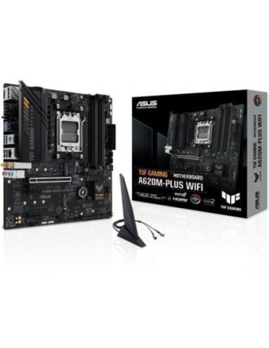 TUF GAMING A620M-PLUS WIFI Motherboard AMD A620 (Ryzen AM5) micro-ATX con DDR5, PCIe 4.0, dos puertos M.2, 2 x DisplayPort, HDMI, Realtek 2.5Gb Ethernet, Wi-Fi 6, USB 3.2 Gen 1 Type-C® frontal, SATA 6 Gbps, BIOS FlashBack, M.2 Q-Latch, cancelación de ruido AI bidireccional e iluminación Aura Sync RGB Socket AMD AM5: Listo para procesadores de escritorio AMD Ryzen. Solución de alimentación mejorada: PCB de seis capas, chokes de aleación, componentes TUF de grado militar y DIGI+ VRM para máxima durabilidad. ASUS OptiMem II: Enrutamiento cuidadoso de trazas y vías, además de optimizaciones de la capa base para preservar la integridad de la señal para mejorar el overclocking de la memoria. Enfriamiento integral: Disipador de calor VRM mejorado, disipador de calor PCH, puertos de ventilador híbrido y Fan Xpert 2+. Conectividad ultrarrápida: PCIe 4.0, puertos M.2, USB 3.2 Gen 1 Type-A y USB 3.2 Gen 1 Type-C® frontal . Hecha para juegos en línea: Wi-Fi 6, Realtek 2.5Gb Ethernet, TUF LANGuard. Iluminación Aura Sync RGB: Puertos Gen 2 direccionables incorporados para tiras de LED RGB, sincronizados fácilmente con hardware compatible con Aura Sync. Cancelación de ruido de IA bidireccional: Reduce el ruido de fondo del micrófono y la salida de audio para una comunicación nítida en juegos o videoconferencias. ASUS TUF GAMING A620M-PLUS WIFI toma todos los elementos esenciales de los procesadores AMD Ryzen serie 7000 y los combina con funciones listas para jugar y una durabilidad probada. Diseñada con componentes de grado militar, una solución de alimentación mejorada y un completo sistema de refrigeración, esta placa base supera las expectativas con un rendimiento sólido como una roca y estable para juegos maratonianos. Las motherboards TUF GAMING también se someten a rigurosas pruebas de resistencia para garantizar que pueden soportar condiciones en las que otras podrían fallar. Estéticamente, este modelo incorpora resistentes elementos de diseño geométrico y negro apagado para reflejar la fiabilidad y estabilidad que definen a la serie TUF GAMING. CONTROL INTELIGENTE Los controles integrales son la base de la serie ASUS TUF GAMING. La placa base TUF GAMING A620 incorpora herramientas flexibles para ajustar cada aspecto de tu sistema, lo que permite realizar ajustes de rendimiento que se adapten perfectamente a tu forma de trabajar para maximizar la productividad. Eficiencia energética integral La función Ahorro de energía contiene varios ajustes que pueden optimizar fácilmente el consumo de energía y maximizar el ahorro energético. Puedes activar un límite de potencia de la CPU, oscurecer la iluminación Aura y ajustar el perfil del ventilador a un modo de ahorro de energía. También puedes activar el plan de Ahorro de Energía integrado en Microsoft Windows Rendimiento sólido como una roca Con una entrega de potencia mejorada y amplias opciones de refrigeración para alimentar las CPU de AMD, además de compatibilidad con memoria y almacenamiento más rápidos, las motherboards TUF GAMING A620 son la base perfecta para tu próximo equipo de batalla AMD de alto número de núcleos. Diseño de placas de circuito impreso de seis capas Las múltiples capas de PCB optimizan la gestión del calor de los componentes críticos para mantenerlos a su temperatura óptima de funcionamiento. Ensamble fácil para PC La línea TUF GAMING ofrece una configuración sencilla para todos los constructores. El ecosistema TUF GAMING Alliance garantiza la compatibilidad, mientras que Armoury Crate dispone de Fan Xpert 2+, información de hardware, cancelación de ruido AI bidireccional, opciones RGB y ajustes de periféricos. Esta plataforma dispone de herramientas intuitivas para construir y optimizar plataformas de ensueño Construye con confianza TUF GAMING Alliance es una colaboración entre ASUS y marcas de componentes de PC de confianza para garantizar la compatibilidad de una amplia gama de piezas, como carcasas de PC, fuentes de alimentación, disipadores de CPU, kits de memoria y mucho más. Con las nuevas asociaciones y componentes que se añaden regularmente, TUF Gaming Alliance seguirá fortaleciéndose aún más Juego inmersivo Las motherboards TUF GAMING A620 proporcionan un paquete de juego de alto rendimiento repleto de funciones, con una red ultrarrápida para un juego en línea más fluido, un audio impecable con señales posicionales para juegos FPS, y una iluminación RGB integrada que se sincroniza con el equipo conectado para personalizar tu ambiente de juego. Especificaciones Modelo TUF GAMING A620M-PLUS WIFI CPU Socket AM5 de AMD para procesadores de escritorio AMD Ryzen de las series 9000, 8000 y 7000* * Consulta www.asus.com para ver la lista de CPU compatibles. Conjunto de chips Conjunto de chips AMD A620 Memoria 4 ranuras DIMM, máx. 192 GB, DDR5 7600+(OC)/ 7200(OC)/ 7000(OC)/ 6800(OC)/ 6600(OC)/ 6400(OC)/ 6200(OC)/ 6000(OC)/ 5800(OC)/ 5600(OC)/ 5400(OC)/ 5200/ 5000/ 4800, ECC y no ECC, memoria sin búfer* Arquitectura de memoria de canal dual Compatible con perfiles extendidos de AMD para overclocking (EXPO) OptiMem II * Los tipos de memoria compatibles, la velocidad de datos y la cantidad de módulos DRAM varían según la configuración de la CPU y la memoria. Para obtener más información, consulte la lista de compatibilidad de CPU/memoria en la pestaña de compatibilidad del sitio de información del producto o visite https://www.asus.com/support/. * La memoria DDR5 sin búfer y sin ECC admite la función On-Die ECC. Gráficos 2 x DisplayPort** 1 x puerto HDMI*** * Las especificaciones de gráficos pueden variar entre los tipos de CPU. Consulta las especificaciones de CPU de AMD. ** Admite 8K a 60 Hz como máximo, según se especifica en DisplayPort 1.4. *** Admite 4K a 60 Hz como se especifica en HDMI 2.1. Ranuras de expansión Procesadores de escritorio AMD Ryzen serie 9000 y 7000* 1 ranura PCIe 4.0 x16 (compatible con el modo x16) Procesadores 
