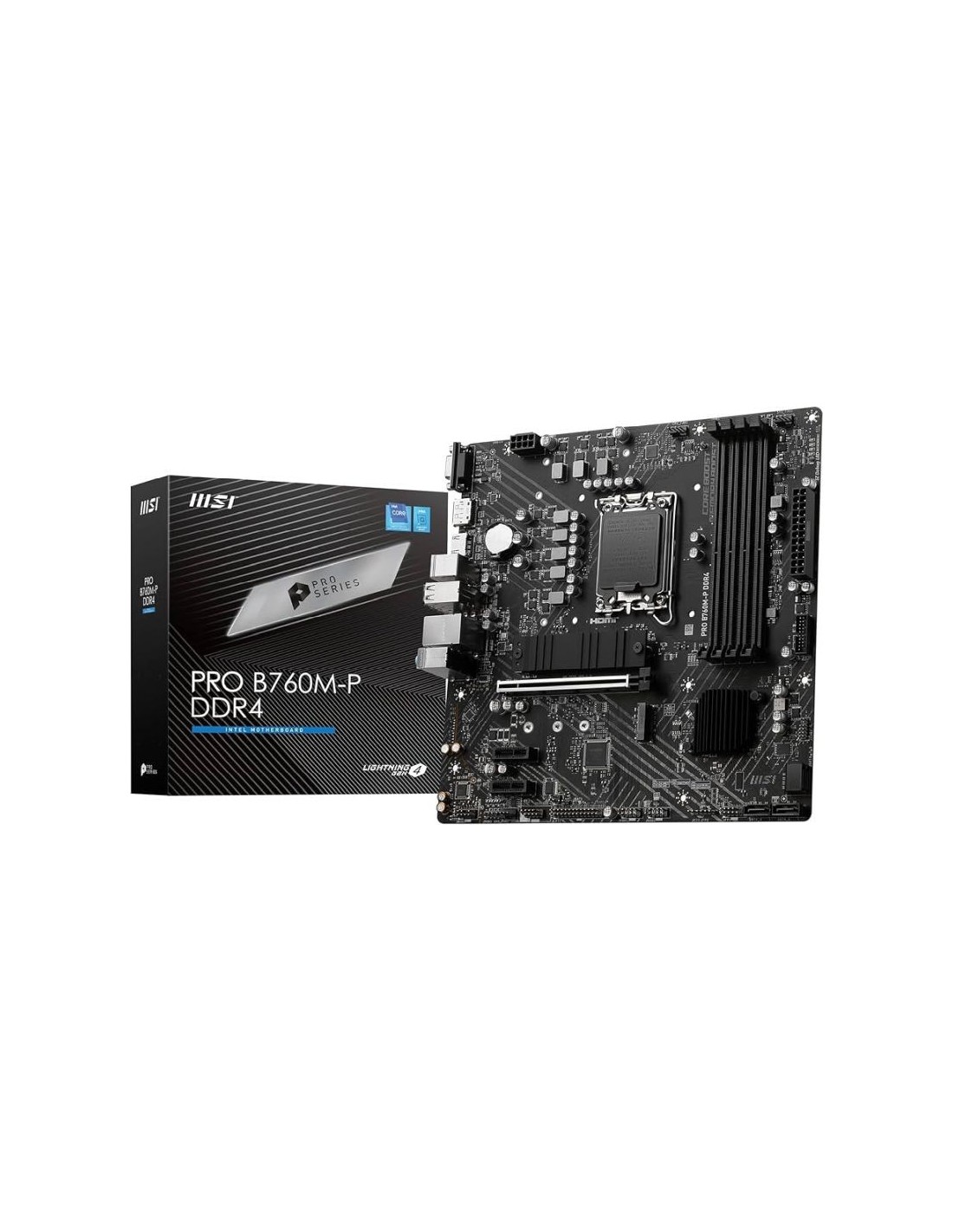 La placa base MSI PRO B760M-P DDR4 diseñada para procesadores híbridos Intel Core de 12ª y 13ª generación es ideal para montar un sistema potente y rentable.Admite procesadores Intel Core de 12ª y 13ª generación, tarjetas gráficas PCI-Express 4.0 16x, PCIe 4.0 M.2 Tarjetas gráficas PCIe 4.0, memoria RAM DDR4 y dispositivos USB 3.1. Características: Compatibilidad con los procesadores Intel Core de 12ª y 13ª generación en el zócalo LGA 1700 Compatible con memoria DDR4 a 4800 MHz (OC) 2 x 4 ranuras M.2 PCIe 4.0 + 4 puertos SATA 6 Gbps Ranura PCI-Express 4.0 16x Ranuras M.2 Shield Frozr para mantener frías las unidades SSD LAN 1 GbE 2 puertos PS/2 Especificaciones CPU Support Supports 13th Gen Intel@ Core TM Processors, Pentium Gold and Celeron@ Processors CPU Socket LGA 1700 Chipset Intel@ B760 Chipset Expansion Slots Ix PCIe 4.0 x16 slot 2x PCIe 4.0 xl slots Display Interface Support 4K@30Hz as specified in HDMI TM 1.4, DisplayPort 1.4, VGA - Requires Processor Graphics Memory Support 4 DIMMs, Dual Channel DDR4-4800+MHz(OC) Storage 2x M.2 Gen4 x4 64Gbps slots, 4x SATA 6Gbps ports USB ports Ix USB 3.2 Gen 2 IOGbps (1 Type-C), USB 3.2 Gen 1 5Gbps (3 Type-A), 8x USB 2.0 Audio 8-Channel (7.1) HD Audio with Audio Boost