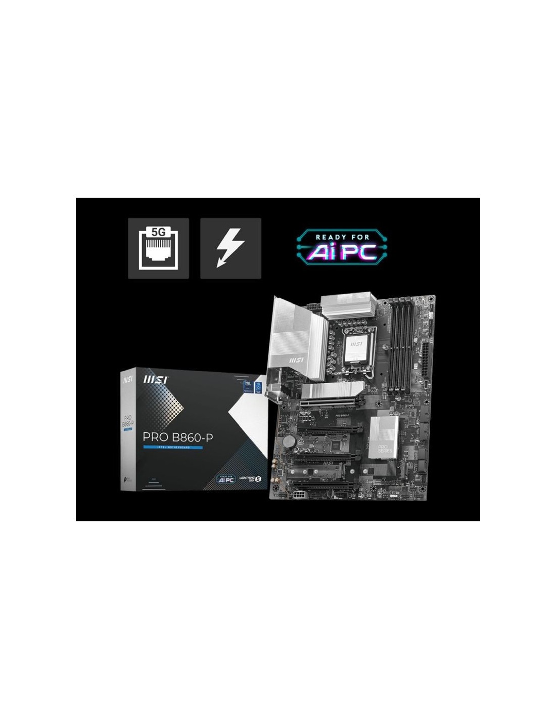 Chipset INTEL B860 CPU Supports Intel® Core Ultra Processors (Series 2) LGA 1851 Memory 4x DDR5 UDIMM, Maximum Memory Capacity 256GB Memory Support 8800 - 6400 (OC) MT/s / 6400 - 4800 (JEDEC) MT/s Max. overclocking frequency: 1DPC 1R Max speed up to 8800+ MT/s 1DPC 2R Max speed up to 7200+ MT/s 2DPC 1R Max speed up to 6400+ MT/s 2DPC 2R Max speed up to 5600+ MT/s Supports Intel® POR Speed and JEDEC Speed Supports Memory Overclocking and Intel® XMP 3.0 Supports Dual-Controller Dual-Channel mode Supports Non-ECC, Un-buffered memory Supports CUDIMM The DIMM slots on this motherboard only have single-sided latches. Memory compatibility and supported speeds can vary depending on the CPU and memory configuration. For detailed information, please refer to the Memory Compatibility List available on the products Support page or visit https://www.msi.com/support/. Onboard Graphics 1x HDMI Support HDMI 2.1, maximum resolution of 4K 60Hz* 1x DisplayPort Support DisplayPort 1.4, maximum resolution of 4K 60Hz* 1x Type-C DisplayPort Thunderbolt 4 port, supporting DisplayPort 2.1 with UHBR20 over USB Type-C, with a maximum resolution of 4K@120Hz / 8K@60Hz* *Available only on processors featuring integrated graphics. Graphics specifications may vary depending on the CPU installed. Slot 4x PCI-E x16 slot (Qty) PCI_E1 Gen PCIe 5.0 supports up to x16 (From CPU) PCI_E2 Gen PCIe 4.0 supports up to x1 (From Chipset) PCI_E3 Gen PCIe 4.0 supports up to x4 (From Chipset) PCI_E4 Gen PCIe 4.0 supports up to x1 (From Chipset) Audio Realtek® ALC897 Codec 7.1-Channel High Definition Audio Storage 3x M.2 (Qty) M.2_1 Source (From CPU) supports up to PCIe 5.0 x4 , supports 2280/2260 devices M.2_2 Source (From Chipset) supports up to PCIe 4.0 x4 , supports 2280/2260/2242 devices M.2_3 Source (From Chipset) supports up to PCIe 4.0 x2 , supports 2280/2260 devices 4x SATA 6G (Qty) *Please refer to the manual for M.2 SSD heatsink restrictions. RAID Supports RAID 0, RAID 1, RAID 5 and RAID 10 for SATA storage devices Onboard Thunderbolt 1x Thunderbolt4 ports (Rear) Supports up to 40Gbps transfer rate with Thunderbolt devices Supports up to 20Gbps transfer rate with USB4 devices Supports up to 10Gbps transfer rate with USB 3.2 devices Supports up to 5V/3A,15W power charging Each port can daisy-chain up to three Thunderbolt 4 devices or five Thunderbolt 3 devices Supports up to 8K display USB 4x USB 2.0 (Rear) 4x USB 2.0 (Front) 2x USB 5Gbps Type A (Rear) 4x USB 5Gbps Type A (Front) 2x USB 10Gbps Type A (Rear) 1x USB 10Gbps Type C (Front) LAN Realtek® 8126 5Gbps LAN Internal IO 1x Thunderbolt5 card connector(JTBT5, support RTD3) 1x Power Connector(ATX_PWR) 2x Power Connector(CPU_PWR) 1x Power Connector(PCIE_PWR 8pin) 1x CPU Fan 1x PUMP_SYS Fan 4x System Fan 2x Front Panel (JFP) 1x Chassis Intrusion (JCI) 1x Front Audio (JAUD) 1x Com Port (JCOM) 1x Tuning Controller connector(JDASH) 2x Addressable V2 RGB LED connector (JARGB_V2) 1x RGB LED connector(JRGB) 1x TPM pin header(Support TPM 2.0) 4x USB 2.0 ports 4x USB 5Gbps Type A ports 1x USB 10Gbps Type C ports LED FEATURE 4x EZ Debug LED