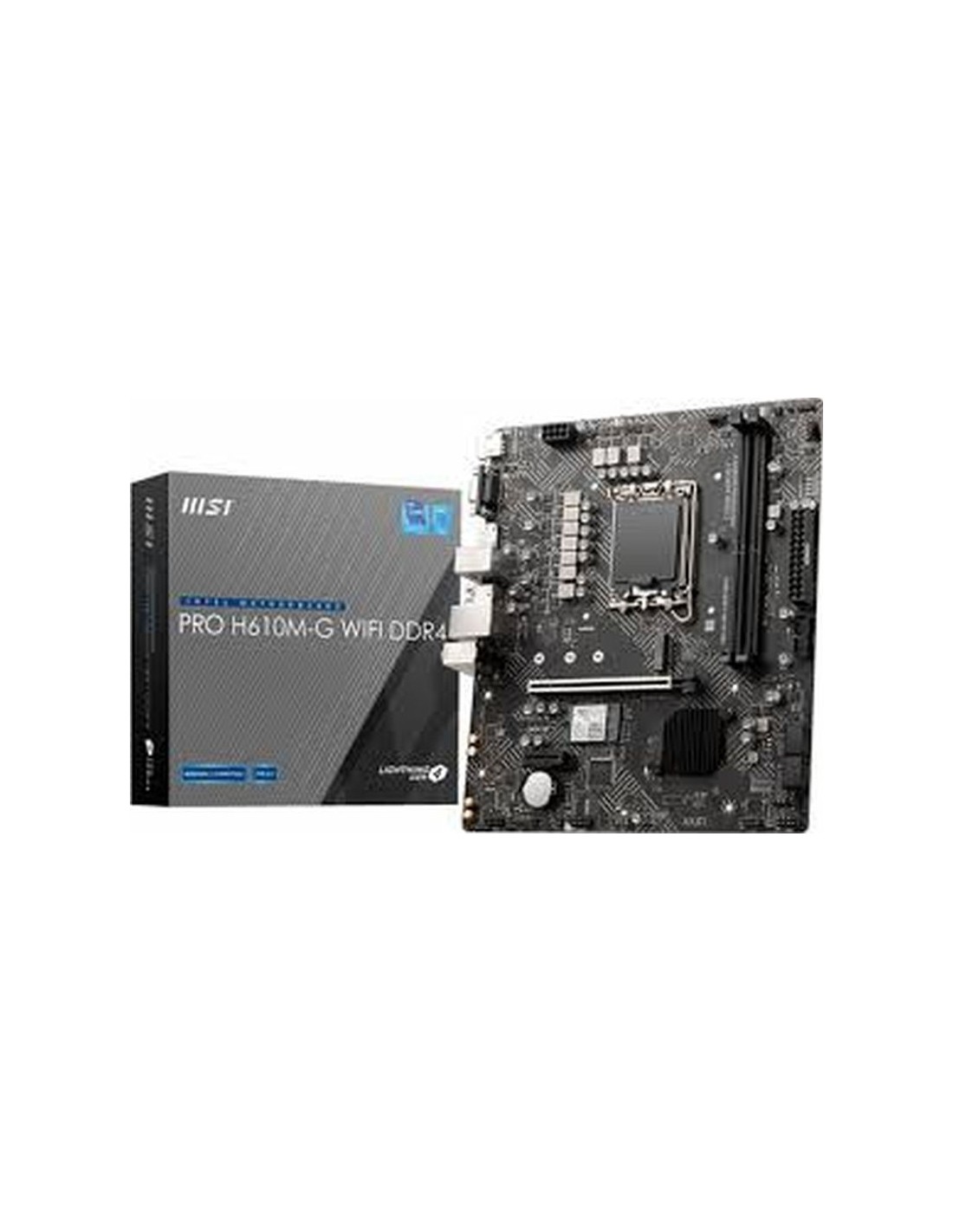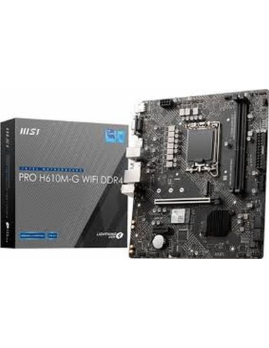 Procesador Fabricante de procesador Intel Socket de procesador LGA 1700 Procesador compatible Intel® Celeron®, Intel® Pentium®, Intel® Pentium® Gold Sockets de procesador soportados LGA 1700 Memoria tipos de memoria compatibles DDR4-SDRAM Número de ranuras de memoria 2 Tipo de ranuras de memoria DIMM Memoria interna máxima 64 GB Canales de memoria Doble canal Velocidades de reloj de memoria soportadas 2133,2666,2933,3200 MHz No ECC Si Conexión Estándar Wi-Fi Wi-Fi 5 (802.11ac) Ethernet Si Tipo de interfaz ethernet Gigabit Ethernet Wifi Si Wi-Fi estándares 802.11a, 802.11b, 802.11g, Wi-Fi 4 (802.11n), Wi-Fi 5 (802.11ac) Bluetooth Si Versión de Bluetooth 4.2 Interno I/O USB 2.0, conectores 2 Conectores USB 3.2 Gen 1 (3.1 Gen 1) 2 Número de conectores SATA III 4 Conector de audio en panel frontal Si Conector de potencia ATX (24 pines) Si Conector de ventilador CPU Si Conector eléctrico de 12 V Si Conector TPM Si Panel trasero Puertos de I/O (entrada/salida) USB 2.0 4 USB 3.2 Gen 1 (3.1 Gen 1) 2 Pertos Ethernet LAN (RJ-45) 1 Puertos VGA (D-Sub) 1 Puertos HDMI 1 DisplayPort 1 Reguladores del almacenaje Compatibilidad con RAID Si Interfaces de disco de almacenamiento soportados M.2, SATA III Tipos de unidades de almacenamiento admitidas SSD Niveles RAID 0, 1, 5, 10 BIOS Tipos de BIOS UEFI AMI BIOS, tamaño de memoria 256 MB/s Gráficos Soporte para proceso paralelo No compatible Versión DirectX 12.0 Características Familia del chipset Intel Chipset Intel H610 Factor de forma Micro ATX Canales de salida de audio 7.1 canales Chip de sonido Realtek ALC897 Componente para PC Sistema operativo Windows soportado Windows 10, Windows 11 Peso y dimensiones Ancho 244 mm Profundidad 211 mm Otras características Peso 764 g Altura 65 mm Contenido del embalaje Cables incluidos SATA Controladores incluidos Si MSI PRO H610M-G WIFI DDR4. Fabricante de procesador: Intel, Socket de procesador: LGA 1700, Procesador compatible: Intel® Celeron®, Intel® Pentium®, Intel® Pentium® Gold. tipos de memoria compatibles: DDR4-SDRAM, Memoria interna máxima: 64 GB, Tipo de ranuras de memoria: DIMM. Interfaces de disco de almacenamiento soportados: M.2, SATA III, Tipos de unidades de almacenamiento admitidas: SSD, Niveles RAID: 0, 1, 5, 10. Tipo de interfaz ethernet: Gigabit Ethernet, Estándar Wi-Fi: Wi-Fi 5 (802.11ac), Wi-Fi estándares: 802.11a, 802.11b, 802.11g, Wi-Fi 4 (802.11n), Wi-Fi 5 (802.11ac). Componente para: PC, Factor de forma: micro ATX, Familia del chipset: Intel