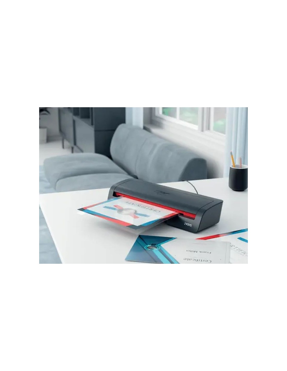 La GBC 240HS es una solucin elegante y eficiente para las necesidades diarias de plastificacin. Diseada pensando tanto en el estilo como en el rendimiento, esta plastificadora A3 de alta velocidad es ideal para el hogar o la oficina. Aumente la productividad y reduzca el tiempo de plastificacin en un 33 % con las fundas de alta velocidad GBC. Con un rpido calentamiento de 2 minutos, plastifica una hoja A4 de 75 micras en tan solo 45 segundos, lo que la hace perfecta para gestionar eficazmente sus proyectos domsticos. El interruptor de control fcil de usar ofrece tres ajustes de grosor de funda, de 75 a 125 micras, lo que proporciona flexibilidad para diversos tipos de documentos. Una palanca de liberacin antiatasco garantiza un funcionamiento suave, eliminando fcilmente las fundas atascadas. Adems, el sistema inteligente de LED de estado simplifica la operacin con claras seales visuales y sonoras: rojo durante el calentamiento, azul con un sonido cuando est lista y apagado automtico tras 15 minutos de inactividad para ahorrar energa. Proteja y conserve sus documentos importantes con un acabado perfecto en todo momento. Color negro y rojo. Cdigo 4410069EU Color Negro/Rojo Dimensiones (An x Al x Pr mm) 460 x 87 x 151 Velocidad de laminacin (mm/min) 400 Temperatura 123 C-135 C Fuente de alimentacin 220-240 V CA 50/60 Hz Tiempo de calentamiento (min) 2 Sistema de calefaccin 2 rodillos calentados desde el exterior Modo de operacin 2 rodillos, sin portador, temperatura controlada Ancho mximo de laminacin (mm) 330 Espesor mximo de laminacin (mm) 0.5 Grosor mximo de la bolsa (micras) 75-125 Consumo de energa (W) 550 Dimensiones (con bandeja) mm 460,00 x 87,00 x 151,00 mm Tecnologa antiinterferencias Palanca de liberacin manual Tiempo aproximado de laminacin (A4) 45 segundos (A4 80 micrones) Foto amigable S Peso 2.2 Tiempo de calentamiento rpido, listo para usar en solo 2 minutos. Compatible con fundas de 75 a 125 micras. Plastifica documentos de identificacin hasta tamao A3. Las laminadoras de alta velocidad GBC reducen el tiempo de laminacin en un 33% cuando se utilizan bolsas de alta velocidad GBC. Lamina un documento A4 (75 micrones) en slo 45 segundos. Lamina 13 x A4 en 10 minutos. LED de estado INTELIGENTE: se ilumina en rojo durante el calentamiento y se vuelve azul con una seal acstica cuando la laminadora est lista para usarse. La palanca de liberacin de atascos permite retirar manualmente con facilidad las bolsas atascadas o mal alimentadas. Incluye un paquete de inicio de 5 bolsas tamao A4 (75 micras). Ahorre energa con la funcin de apagado automtico de 15 minutos, que se activa despus de detectar inactividad. Nivel de ruido bajo