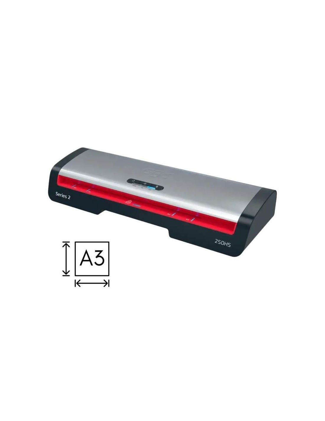 La plastificadora GBC 250HS Office es una solucin profesional y eficiente para el laminado de documentos hasta tamao DIN A3. Su diseo con dos rodillos garantiza un acabado uniforme y de alta calidad, mientras que su rpido tiempo de calentamiento permite iniciar el trabajo en apenas un minuto. Ideal para oficinas y entornos con demanda frecuente de plastificacin, ofrece un manejo sencillo a travs de un panel intuitivo y funciones pensadas para optimizar tanto la productividad como el ahorro energtico. Descripcin Detalles del producto Capacidad de laminado: Documentos y materiales de hasta tamao DIN A3. Grosor de lminas: Soporta bolsas de plastificacin de 75 a 125 micras. Velocidad y eficiencia: Plastifica una hoja A3 de 75 micras en 36 segundos, reduciendo el tiempo habitual de laminado hasta en un 30%. Rodillos dobles: Dos rodillos garantizan un calentamiento uniforme y laminado sin burbujas ni arrugas. Panel de control intuitivo: Incluye tres ajustes de grosor y botn de retroceso para liberar bolsas atascadas. Sistema SMART LED: Indicadores visuales y acsticos que muestran el estado de calentamiento y funcionamiento. Apagado automtico: Se desconecta tras 15 minutos de inactividad, contribuyendo al ahorro energtico y prolongando la vida til del equipo. Tiempo de calentamiento: Aproximadamente 1 minuto para estar lista para plastificar.