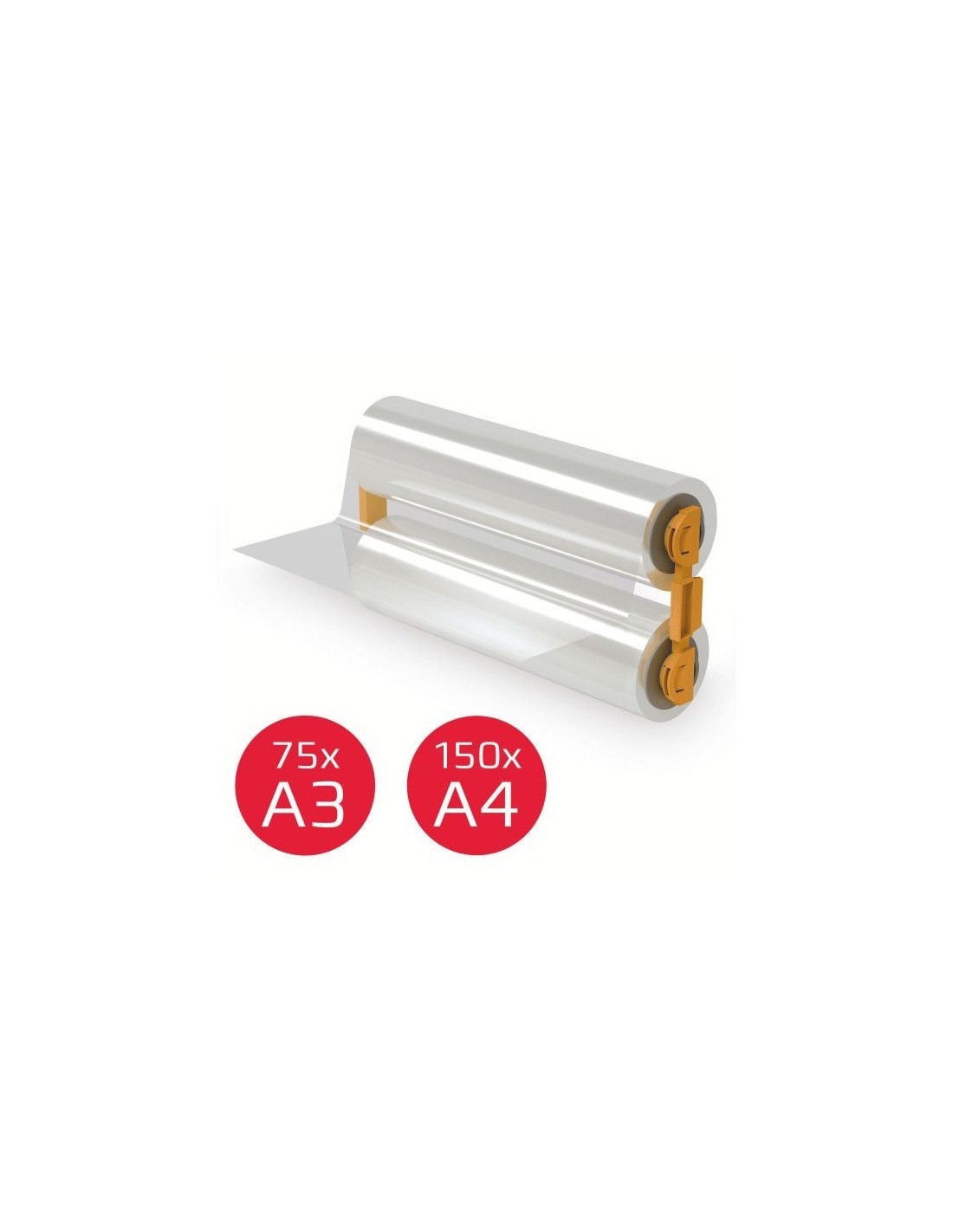 Rollo de plastificación de recambio para el cartucho recargable de 100 micras. Plastifica hasta 150 hojas A4. Cantidad de metros 34,4 Los sensores detectan automáticamente el grosor del film cuando se carga el cartucho. Medidas: 310x80x190 Peso 2,69kg.