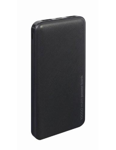 Batería externa de 10000 mAh, negra PODER PORTÁTIL Carga tu equipo sobre la marcha Suficientemente potente para cargar tabletas Powerbank compacto de 10000 mAh con 2 puertos USB Adecuado para cargar, por ejemplo, teléfonos inteligentes o tabletas Protección integrada contra cortocircuito, sobrecarga y sobredescarga Indicador LED de estado de la batería Especificaciones Batería: 10000 mAh, polímero de litio 3,7 V Entrada de alimentación: Micro-USB; Tipo-C, 5,0 V CC, hasta 2,0 A (tiempo de recarga de hasta 5 horas) Potencia de salida: 2 x USB-AF, 5,0 V CC, 2,4 A, 12,0 W (total máx.) Temperatura de trabajo: 0-45 °? Dimensiones: 136 x 68 x 16 mm (largo x ancho x alto) Peso neto: 0,214 kg https://www.gembird.com/item.aspx?id=12432