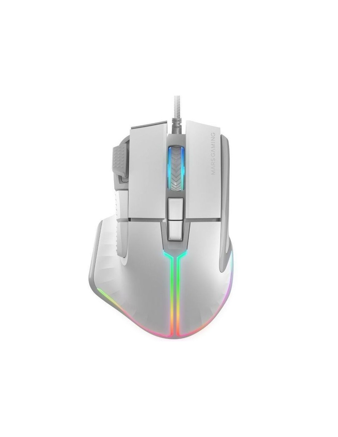 RATN GAMING MM-XT El ratn MM-XT es la fusin perfecta de rendimiento, estilo y comodidad con avanzado sistema de iluminacin RGB y potente software para una personalizacin completa, cable feather paracord para limitar al mximo el peso del ratn, diseo ergonmico con acabado antideslizante y reposa pulgar. Adems, su compatibilidad multiplataforma lo hace ideal para cualquier configuracin de juego o trabajo, compatible tanto con PC como con consolas. Precisin, estilo y comodidad en la palma de tu mano Cable Feather Paracord Sensor ptico A825PRO de 12800DPI 9 botones configurables con Switches Huano Software de control DISEO ERGONMICO CON REPOSA PULGAR Da a tu mano la comodidad que necesita con el ratn gaming MM-XT. Su estructura ergonmica con acabado antideslizante incluye una forma natural para reposar el pulgar, proporcionando un agarre cmodo y reduciendo la fatiga en sesiones prolongadas. Adems, su cable trenzado ultraflexible y ligero mejora la movilidad sin sacrificar la durabilidad del ratn. ILUMINACIN RGB CONTROL Personaliza tu setup como nunca con el sistema de iluminacin RGB del MM-XT. Elige entre mltiples modos de iluminacin para crear el ambiente perfecto para cada sesin gaming y sumerge en la partida. PRECISIN TOTAL Descubre una precisin inigualable con el MM-XT, equipado con el avanzado sensor ptico A825PRO y configurable hasta 12800 DPI. Con los dos botones superiores configurables puedes ajustar los DPI al instante, aumentando o disminuyendo entre 6 niveles predefinidos (1000/2000/3200/4800/7200/12800) para adaptarlo a cada tarea o juego. Ideal para gamers y profesionales que requieren la ms alta precisin en cada movimiento, este sensor garantiza una respuesta rpida y exacta en cualquier situacin. 9 BOTONES CON SWITHES HUANO El MM-XT eleva tu experiencia de juego con sus 9 botones configurables y duraderos switches mecnicos HUANO. Configura cada botn, incluido un botn de disparo extra, para adaptarse a tus necesidades, ya sea para gaming intenso o para tareas diarias, y disfruta de una respuesta tctil y rpida en cada clic. COMPATIBILIDAD MULTIPLATAFORMA Ya sea que juegues en PC, Mac, PS4, PS5, XBOX ONE o XBOX SERIES X-S, el ratn gaming MM-XT est listo para la accin. Su amplia compatibilidad garantiza que puedas disfrutar de una experiencia de juego superior en casi cualquier plataforma. PODEROSO SOFTWARE DE CONTROL Maximiza tu rendimiento con el software de control descargable de Mars Gaming. Personaliza y controla funciones avanzadas, crea macros personalizadas. Este software te permite ajustar cada detalle del ratn para adaptarlo perfectamente a tu estilo de juego y rendir al mximo. CABLE CON DISEO FEATHER PARACORD El MM-XT cuenta con un cable Feather Paracord de diseo exclusivo, creado para minimizar el peso del ratn. Su fabricacin y diseo te aseguran flexibilidad, durabilidad y una ligereza excepcional, disminuyendo la resistencia al mnimo para ofrecer una experiencia similar a la de un ratn inalmbrico. CARACTERSTICAS TCNICAS Materiales ABS Switches HUANO Peso 94g Dimensiones 126x85x43mm Ergonoma Diestro Botones 9 Acabado Antideslizante Color Negro/Blanco Sensor ptico Instant A825PRO DPI 12800 Frecuencia de refresco 1000 Hz Velocidad mx. 60 IPS Aceleracin mx. 20G Tipo de cable Cable trenzado ultra flexible Longitud del cable 1.55m Conectores USB Software Control de funciones, macros, iluminacin y rendimiento (Slo Windows) Compatibilidad Windows, Linux, Mac, PS4, PS5, XBOX ONE, XBOX SERIES X-S Corriente 100mA Voltaje DC 5V CONTENIDO DE LA CAJA Ratn y manual.
