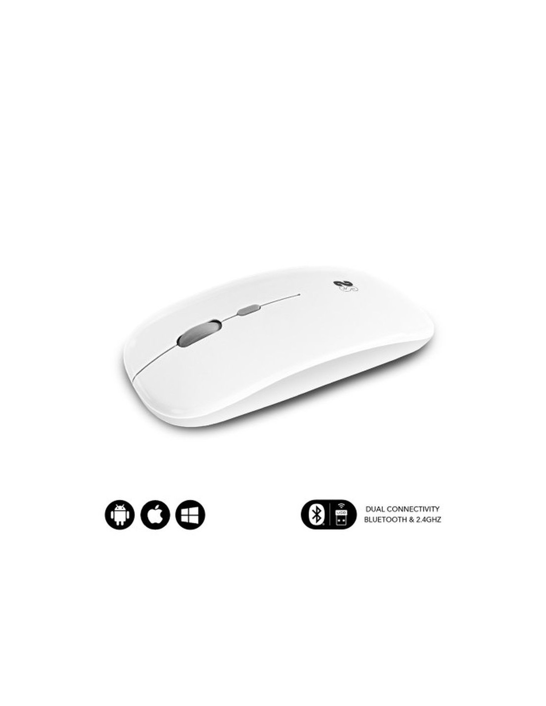 RATN PTICO WIRELESS DUAL FLAT MOUSE RECARGABLE WHITE Elegante acabado en blanco con efecto nacarado. Conectividad por radiofrecuencia con receptor USB y bluetooth 5.1. Compatible con dispositivos Windows 8/10/11, Android, iOS/iPadOS 13 y MacOs. Diseo ultradelgado y ergonmico. Silencioso. Rueda de desplazamiento de silicona antideslizante. Batera recargable de 500 mAH (cable USB incluido). 800 dpi, 1200 dpi y hasta 1600 dpi para una mxima precisin. Dispone de 4 botones. Ambidiestro. Este ratn dual ofrece una gran experiencia al usuario. Su conexin dual permite conectarlo a dos dispositivos usando la conexin bluetooth o el receptor USB de forma inmediata. Incluye la tecnologa de clic silencioso para disfrutar del trabajo en entornos compartidos sin molestar. La batera est integrada y es de larga duracin para interferir lo menos posible con tu ritmo de trabajo. Caractersticas: Dos conexiones en un mismo ratn. Sin duda estamos ante uno de los ratones ms completos del mercado. La tecnologa dual permite que podamos conectarlo tanto por radiofrecuencia con un receptor USB como por bluetooth, pudiendo llegar a conectar dos dispositivos. Silent Click. El Dual Flat Mouse es silencioso para poder llevarlo a cualquier sitio, desde tu trabajo, un centro de estudio, tu casa. La tecnologa Silent Click soluciona el molesto clic repetitivo del ratn que puede llegar a desconcentrarnos, los botones del ratn son silenciosos. Batera Li-ion Recargable. Sin necesidad de pilas, para que te puedas olvidar de ellas. Esta batera de 500 MHa es de larga duracin. Adems, nunca te quedars sin ratn porque puedes seguir trabajando mientras se recarga la batera por USB. Rueda se silicona. Disfruta de las mejores sensaciones con la rueda antideslizante de diseo de silicona. Resulta muy cmoda y tiene un tacto agradable. Mxima precisin. salo en mltiples superficies con alto rendimiento y excelentes resultados, adapta la precisin para trabajar a tu gusto. Cuenta con un sensor ptico con precisin lser de 1600 dpi que proporciona un movimiento suave y sin saltos. Ahorro de energa. Despus de un tiempo de inactividad, el ratn pasar automticamente al modo suspensin para ahorrar batera, as no tendrs que preocuparte por encenderlo o apagarlo cada vez que lo uses. Para activarlo, presiona cualquier tecla y vuelve al trabajo. Peso 0,04 kg Dimensiones 11,2 5,8 2 cm Color Blanco Fuente de alimentacin Pilas Botones silenciosos S DPI 800 a 1600 DPI Conectividad Bluetooth, Dual (Bluetooth+Receptor USB), Receptor USB Inalmbrico 2.4Ghz. https://subblim.com/producto/raton-optico-wireless-dual-flat-mouse-recargable-white/