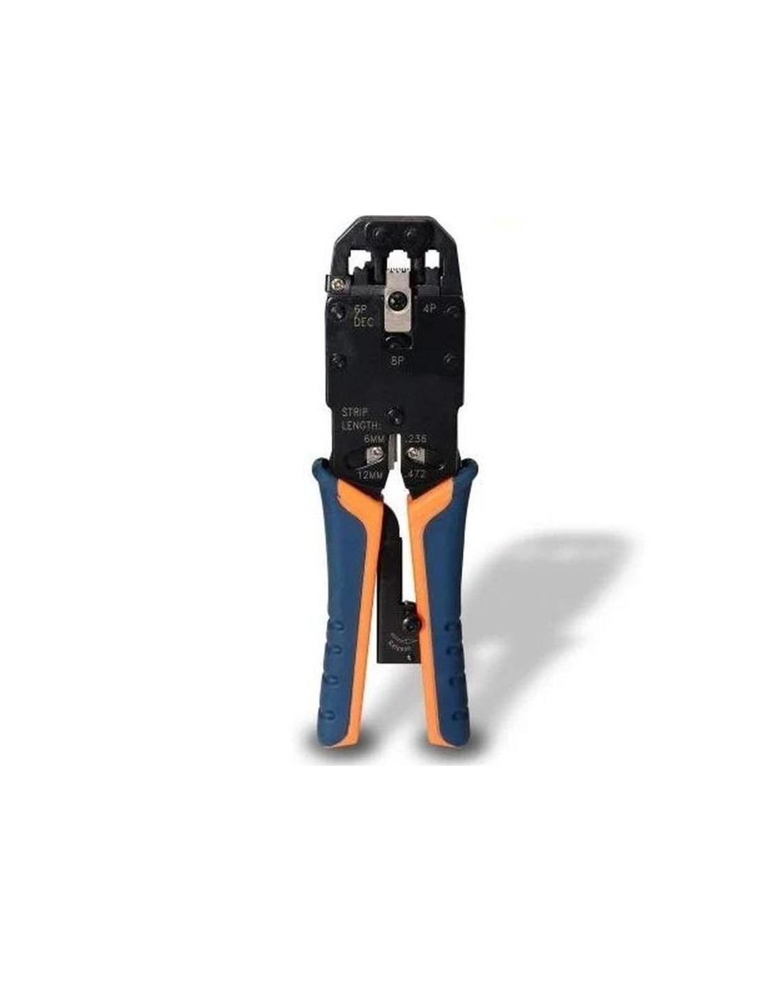 Tenaza metálica de crimpar de calidad de carraca para conectores RJ10/RJ11/RJ12/RJ45 (4P+6P+8P) Es una herramienta ideal para instaladores profesionales Longitud: N/A Color: N/A Normativas: RoHS Test de funcionamiento: 100% testado