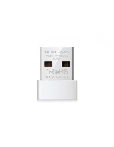 N150 Wireless Nano USB Adapter MW150US Compact, convenient solution to make your device wireless Perfect for essential Internet applications such as web browsing, email, and chatting Supports Windows 10/8.1/8/7/XP (32/64bit) Dimensions (W X D X H) 0.74 × 0.58 × 0.27 in. (18.9 × 14.8 × 6.85 mm) Antenna Type Internal Signal Rate 11n: Up to 150Mbps (Dynamic) 11g: Up to 54Mbps (Dynamic) 11b: Up to 11Mbps (Dynamic) Wireless Standards IEEE 802.11n, IEEE 802.11g, IEEE 802.11b Frequency 2.400 - 2.4835GHz Reception Sensitivity 130M: -68dBm@10% PER 108M: -68dBm@10% PER 54M: -68dBm@10% PER 11M: -85dBm@8% PER 6M: -88dBm@10% PER 1M: -90dBm@8% PER Interfaces USB 2.0 Certifications CE, ROHS Package Contents N150 Wireless Nano USB Adapter MW150US Quick installation guide Resource CD Environment Operating temperature: 0°C ~40°C (32°F ~104°F) Storage temperature: -40°C~70°C (-40°F~158°F) Operating humidity: 10%~ 90% non-condensing Storage humidity: 5%~90% non-condensing Transmission Power <20dBm Wireless Security WEP, WPA/WPA2, WPA-PSK/WPA2-PSK System Requirements Windows 8.1/8/7/XP (32/64bit) http://www.mercusys.com/es/product/details/MW150US#specifications