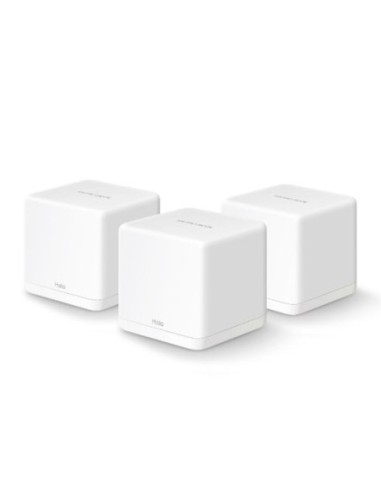 Halo H30G Sistema Wi-Fi en malla para todo el hogar AC1300 Una red unificada : con tecnología de malla avanzada, las unidades Halo trabajan juntas para formar una única red doméstica unificada con un solo nombre y contraseña de Wi-Fi. Roaming continuo : cambia automáticamente entre Halos mientras te mueves por tu casa, obteniendo siempre la mejor señal para disfrutar de las conexiones más rápidas para todos tus dispositivos. Cobertura para toda la casa : cubra hasta 320 m² (3500 ft²) con Wi-Fi de alta velocidad, eliminando las zonas muertas de Wi-Fi en su hogar. WiFi de doble banda de 1,3 Gbps : Halo H30G proporciona conexiones rápidas y estables de hasta 100 dispositivos con velocidades de hasta 1300 Mbps y funciona con los principales proveedores de servicios de Internet (ISP) y módems. Fácil control de aplicaciones : use la aplicación MERCUSYS para configurar y administrar rápidamente su WiFi. Puertos Gigabit completos : 2 puertos Gigabit por unidad Halo para conexiones por cable ultrarrápidas *Tenga en cuenta que la serie Halo H y la serie S no pueden funcionar juntas. InalámbricaEstándares inalámbricos IEEE 802.11 a/n/ac 5 GHz, IEEE 802.11 b/g/n 2,4 GHz Velocidades WiFi 867 Mbps en 5 GHz, 400 Mbps en 2,4 GHz Sensibilidad de recepción 2,4 GHz: 11g 6Mbps:-96dBm 11g 54Mbps:-78dBm 11n HT20 MCS7:-76dBm 11n HT40 MCS7:-73dBm 5 GHz: 11a 6Mbps:-95dBm 11a 54Mbps:-77dBm 11ac VHT20 MCS8:-72dBm VHT-6Bm 11acdBm4 11ac VHT80 MCS9:-63dBm Poder de transmision 2,4 GHz < 20 dBm (PIRE) 5 GHz < 23 dBm (PIRE) Seguridad inalámbrica WPA-PSK/WPA2-PSK Protocolo de malla 802.11k/v/r SoftwareModos de operación Enrutador, punto de acceso Calidad de servicio MMM Tipo de WAN IP dinámica/IP estática/PPPoE/L2TP/PPTP Gestión Gestión local, gestión remota, multigestores DHCP servidor, cliente Seguridad del cortafuegos Cortafuegos SPI Protocolos Soporta IPv4 e IPv6 Red de invitados 1 red para invitados de 2,4 GHz, 1 red para invitados de 5 GHz HardwareDimensiones 3,5 × 3,5 × 3,5 pulgadas (88 × 88 × 88 mm) Interfaces 2 puertos Gigabit por unidad Halo (detección automática de WAN/LAN) Botón Botón de reinicio Otroscontenidos del paquete 3 unidades Halo H30G 1 cable Ethernet RJ45 3 adaptadores de corriente 1 guía de instalación rápida Ambiente Temperatura de funcionamiento: 0°C~40°C (32°F~104°F) Humedad de funcionamiento: 10%~90% sin condensación Humedad de almacenamiento: 5%~90% sin condensación https://www.mercusys.com/en/product/details/halo-h30g/v1/3-pack/#overview