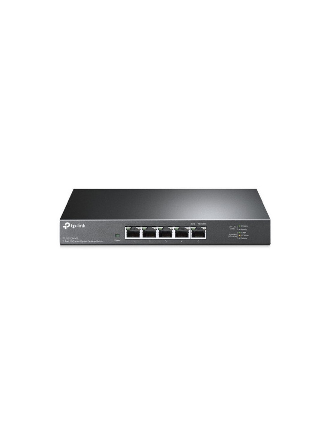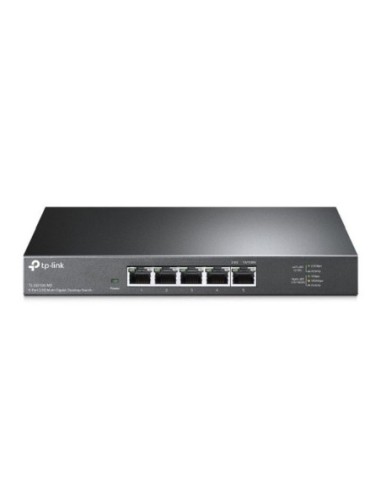 TL-SG105-M2 Switch de escritorio de 5 puertos 2.5G Cinco puertos de 2,5 Gbps . Los puertos 5 × 2.5-Gigabit desbloquean el mayor rendimiento de su ancho de banda y dispositivos Multi-Gig, y proporcionan hasta 25 Gbps de capacidad de conmutación. Conexiones superrápidas . Brinda conexiones súper rápidas a 2.5G NAS, 2.5G Server, computadora de juegos, 2.5G WiFi 6 AP, video 4K y más. Ideal para varios escenarios . Diseñado para fiestas LAN, entretenimiento en el hogar, oficinas pequeñas y en el hogar y transferencia instantánea para estaciones de trabajo, Cableado sin complicaciones . Actualice instantáneamente a 2.5 Gbps sin la necesidad de actualizar a cableado Cat6, lo que reduce los costos de cableado y las molestias. ** Operación silenciosa . El diseño sin ventilador líder en la industria garantiza un funcionamiento silencioso, ideal para cualquier hogar o negocio. Plug and Play . Permite una implementación sencilla sin la necesidad de un técnico. Carcasa de metal . La carcasa de metal duradera y el diseño de montaje en escritorio / pared son adecuados para diferentes entornos. Diseño Certificación: CE, FCC ,RoHS Color del productoNegro Indicadores LED: Si Conexión Soporte 10GNo Estándares de redIEEE 802.3z, IEEE 802.3p, IEEE 802.3ab, IEEE 802.3, IEEE 802.3u, IEEE 802.3x Ethernet LAN, velocidad de transferencia de datos10,100,1000 Mbit/s Condiciones ambientales Intervalo de humedad relativa para funcionamiento10 - 90% Intervalo de temperatura de almacenaje-40 - 70 °C Intervalo de humedad relativa durante almacenaje5 - 90% Intervalo de temperatura operativa0 - 40 °C Disipación del calor41,32 BTU/h Transmisión de datos Tasa de reenvío18,6 Mpps Capacidad de conmutación25 Gbit/s Tabla de direcciones MAC: 16000 entradas Guardar y remitir: Si Alimentación a través de Ethernet (PoE) Energía sobre Ethernet (PoE): No Control de energía Consumo de energía (max): 12,11 W Fuente de alimentación incluida: Si Corriente de entrada: 1 A Voltaje de entrada DC: 12 V Características de administración Tipo de interruptor: No administrado Peso y dimensiones Profundidad: 126 mm Ancho: 209 mm Altura: 26mm Puertos e Interfaces Cantidad de puertos básicos de conmutación RJ-45 Ethernet: 5 Puertos tipo básico de conmutación RJ-45 Ethernet: Gigabit Ethernet (10/100/1000) Empaquetado Cables incluidos: LAN (RJ-45) Guía de configuración rápida: Si