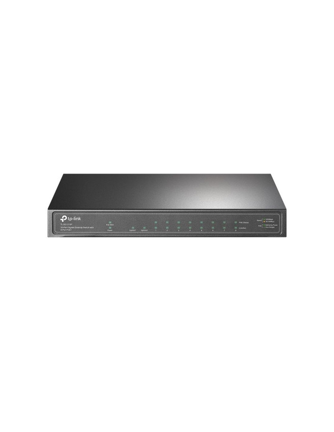 TL-SG1210P Nuevo Switch Sobremesa 10-Puertos Gigabit con 8 Puertos PoE+ 9 Puertos 10/100/1000Mbps RJ45, 1 Puerto SFP Gigabit Con 8 puertos PoE+, transfiere datos y energía en un solo cable Compatible con equipos de estándar IEEE 802.3af/at, expande la red doméstica y de la oficina 802.1p/DSCP QoS permite una gran suavidad con el tráfico sensible a la latencia Energía PoE hasta 30W por puerto y un total de 63W para todos los puertos Fácil de usar, sin necesidad de configuración o instalación CARACTERÍSTICAS DE HARDWARE Interfaz 8 Puertos PoE+ 10/100/1000Mbps RJ45 1 Puerto 10/100/1000Mbps RJ45 1 Puerto SFP Gigabit SFP Medios de Red 10BASE-T: cable UTP Categoría 3, 4, 5 (máximo 100 metros) EIA/TIA-568 100O STP (máximo 100 m) 100BASE-TX: cable UTP Categorías 5, 5E (máximo 100 metros) EIA/TIA-568 100O STP (máximo 100 m) 1000BASE-T: cable UTP Categorías 5, 5E, 6 o superior (máximo 100 metros) EIA/TIA-568 100O STP (máximo 100 m) Cantidad de Ventiladores Sin ventilador Bloqueo de Seguridad Físico Yes Fuente de Alimentación Adaptador de Energía Externo(Salida: 53.5VDC / 1.31A) Ancho de Banda de Backup 20 Gbps Tasa de Reenvío de Paquetes 14.88 Mpps Puertos PoE+ (RJ45) Estándar: 802.3at/802.3af Puertos PoE: Port1- Port 8 PoE Total: 63W Tabla de Dirección MAC 4K Jumbo Frame 16 KB Capacidad de Conmutación 20 Gbps Dimensiones 209 × 126 × 26 mm Consumo de Potencia Máximo 7.11 W (220/50Hz. sin dispositivos PD conectados) 78.13 W (220/50Hz. con 63W equipos PD conectados) Max Heat Dissipation 24.25 BTU/h (sin dispositivos PD conectados) 266.42 BTU/h (con 63W equipos PD conectados) CARACTERÍSTICAS DE SOFTWARE Características Avanzadas Compatible con equipos estándar IEEE 802.3af/at EEE802.3x Flow Control 802.1p/DSCP QoS IGMP Snooping Método de Transmisión Almacenamiento y Envío OTROS Certificaciones CE, FCC, RoHS Contenido del Paquete TL-SG1210P, Adaptador de Energía, Guía de Instalación Factores Ambientales Temperatura de funcionamiento: 0?~40? (32?~104?) Temperatura de almacenamiento: -40?~70? (-40?~158?) Humedad de funcionamiento: 10%~90% sin condensación Humedad de almacenamiento: 5%~90% sin condensación https://www.tp-link.com/es/business-networking/poe-switch/tl-sg1210p/#specifications