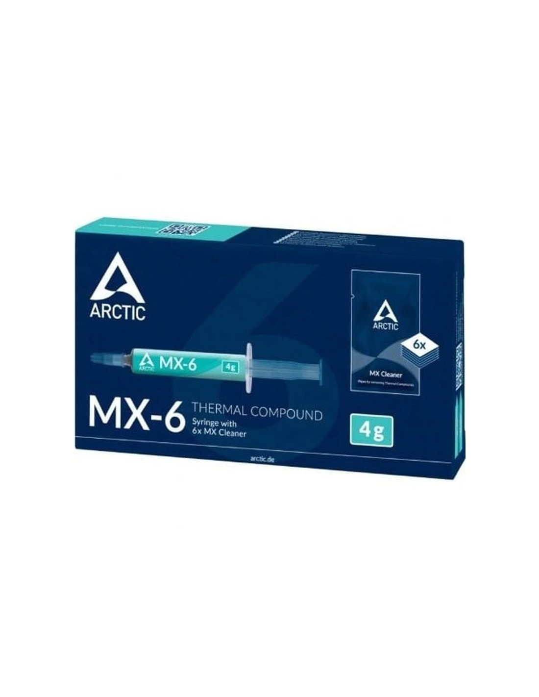 No es posible la aplicación con espátula MX-6 es una pasta de alta viscosidad y alto rendimiento. No se puede extender con espátula. En su lugar, utilice la presión de contacto del enfriador. 20% mejor rendimiento Gracias a su composición mejorada, la ARCTIC MX-6 presenta una resistencia térmica considerablemente menor que la MX-4. Medimos la resistencia térmica absoluta de ambas pastas en nuestro equipo de pruebas de laboratorio, que es mucho más preciso que una CPU. Dos factores son principalmente relevantes: Conductividad Espesor mínimo de la línea de unión Una menor resistencia térmica de la pasta conduce a una menor diferencia de temperatura entre la CPU y el disipador. Consistencia óptima para cada aplicación Según las preferencias personales y el área de aplicación, se puede preferir un compuesto térmico más fluido o más espeso. Sus excelentes propiedades antisecado y antiexudación garantizan un rendimiento constante a largo plazo. Con las pastas térmicas ARCTIC encontrará la viscosidad óptima para su aplicación. Calidad comprobada Estamos orgullosos de nuestras pastas térmicas. Con más de 20 años de experiencia en el mercado de refrigeración para PC, la MX-6 se desarrolló con el objetivo de ofrecer un producto de primera calidad a un precio justo. Su fórmula optimizada se basa en la probada MX-4, una de las pastas térmicas más vendidas del mundo. Nos centramos en la versatilidad de sus aplicaciones y en una consistencia fácil de usar. Simplemente la pasta El ARCTIC MX-6 alcanza su máximo rendimiento sin necesidad de quemarlo, directamente después de su aplicación y distribución. Todo esto se logra sin ingredientes de mala calidad, como el costoso polvo de diamante o diversas partículas de metales preciosos. El gel de silicona utilizado como soporte permite una distribución óptima, lo que se consigue mediante una presión de contacto uniforme, por ejemplo, al montar el disipador de calor. Solicitud sin riesgos MX-6 no es conductor ni capacitivo. Esto elimina el riesgo de cortocircuitos o descargas, que pueden causar graves daños a los componentes si no se tiene cuidado. La pasta térmica tampoco contiene componentes metálicos líquidos, que a menudo pueden causar decoloración, abrasión o corrosión en la parte inferior del radiador. Gama versátil de aplicaciones Con su nueva composición, el MX-6 es el compuesto térmico ideal para diversas aplicaciones. Sus excelentes propiedades antisecado y antiderrames garantizan un rendimiento constante a largo plazo. Su viscosidad previene fugas gracias al efecto de bombeo ?? . También es adecuado para la refrigeración directa de la matriz, como ocurre, por ejemplo, con tarjetas gráficas o GPU de procesadores de consola. Disponible en varias versiones ARCTIC MX-6 está disponible en envases de 2 a 8 gramos. Las jeringas resellables evitan que la pasta se seque y facilitan su dispensación. Como alternativa, existen versiones con limpiador MX . Estas permiten una limpieza sencilla y sin residuos de las superficies de contacto. El limpiador está compuesto 100 % de limoneno, una sustancia natural obtenida del aceite esencial de cítricos y completamente biodegradable. 100% original mediante verificación de autenticidad Para garantizar la autenticidad de su pasta, existe la Verificación de Autenticidad ARCTIC. Esto permite verificar cada producto de forma fiable. Una falsificación no ofrece ni el rendimiento ni la durabilidad de las pastas ARCTIC originales. Fácil aplicación Gracias a su consistencia, el MX-6 es fácil de aplicar incluso para principiantes. En el video, mostramos cómo aplicarlo para evitar bolsas de aire entre el procesador y el disipador. Especificaciones Viscosidad: 45.000 aplomos Densidad: 2,6 g/cm³ Temperatura de uso continuo: -50~150 ? Resistividad de volumen: 1,8 x 10 12 O-cm Tensión de ruptura: 7,5 kV/mm Color: Gris Embalaje: Ancho: 120 mm, Altura: 23 mm, Longitud: 66 mm, Peso: 0,039 kg